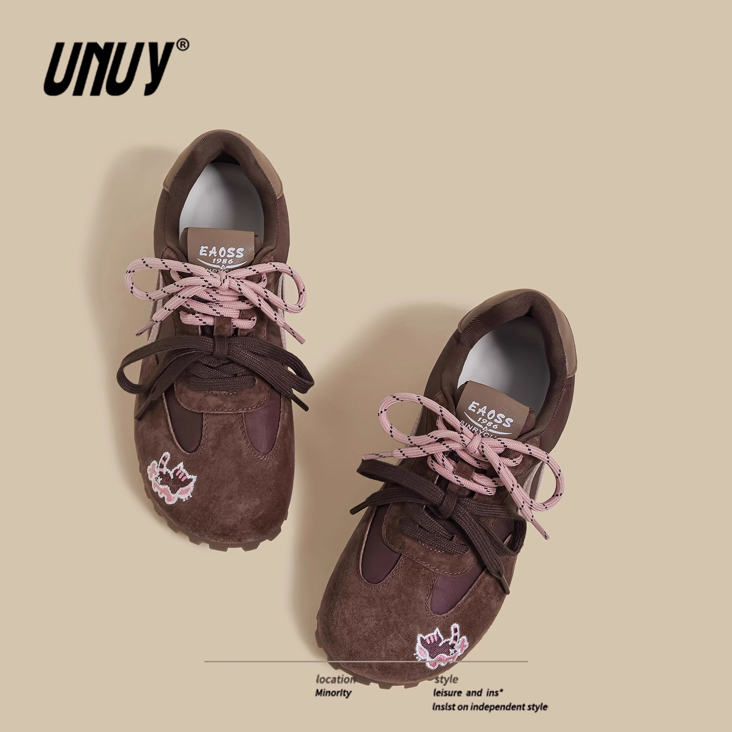 平底阿甘鞋 运动休闲老爹鞋 女时尚 带德训鞋 女 棕色双鞋 2025秋冬新款