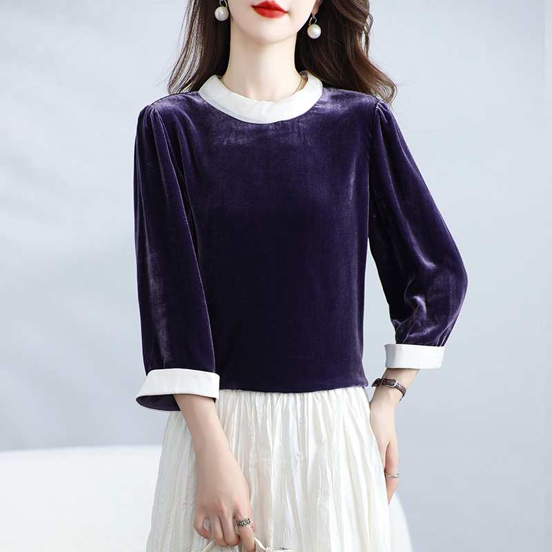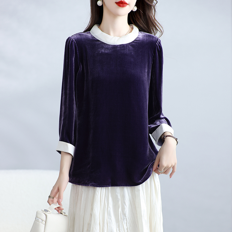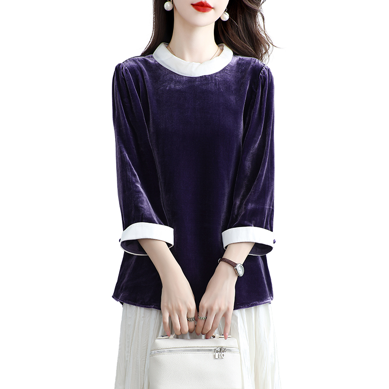 桑蚕丝T恤圆领纯色遮肉显瘦外套春秋 七分袖 新款 真丝丝绒上衣女装