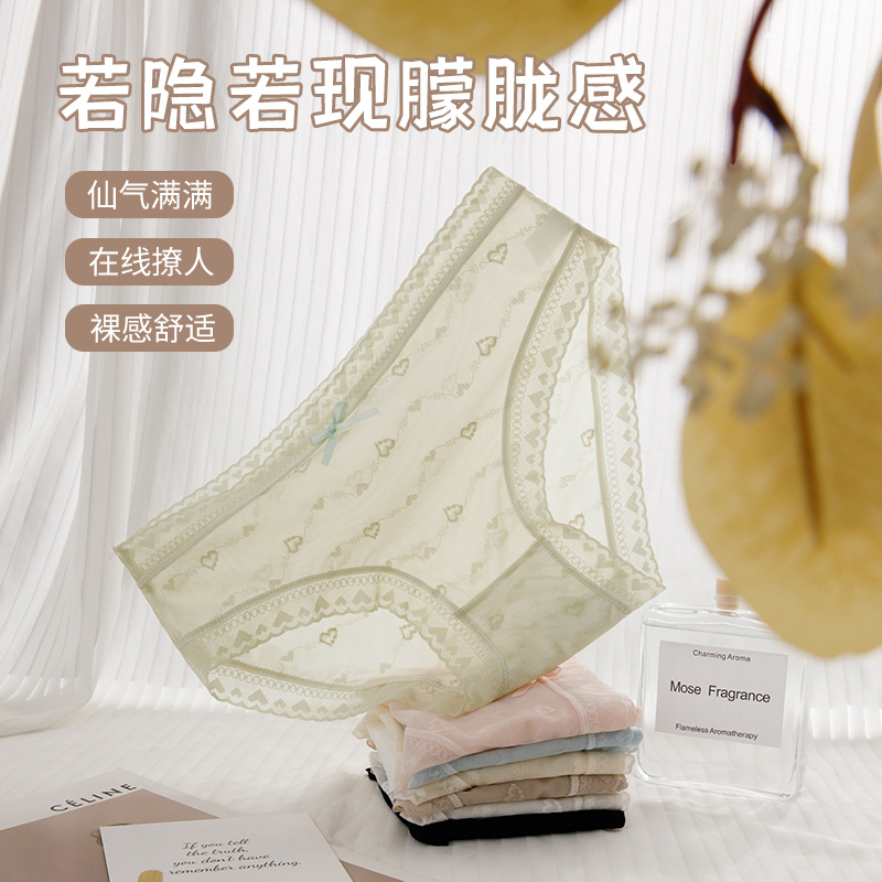 短裤 蕾丝内裤 女士无痕性感中腰纯欲网纱少女生纯棉抗菌裆2025新款