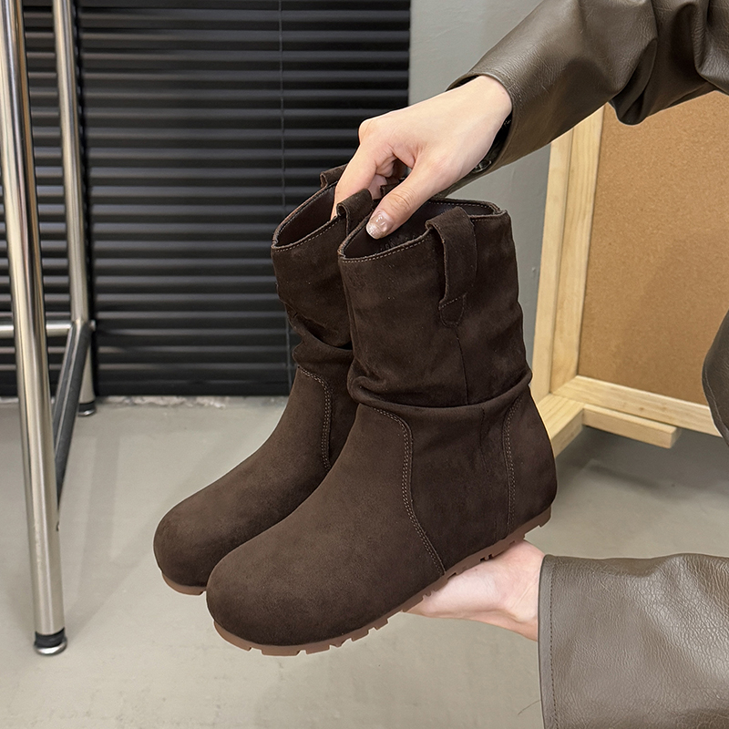子 秋冬绒面勃肯鞋 洋气巨好看 内增高瘦瘦堆堆小短靴女2025年新款