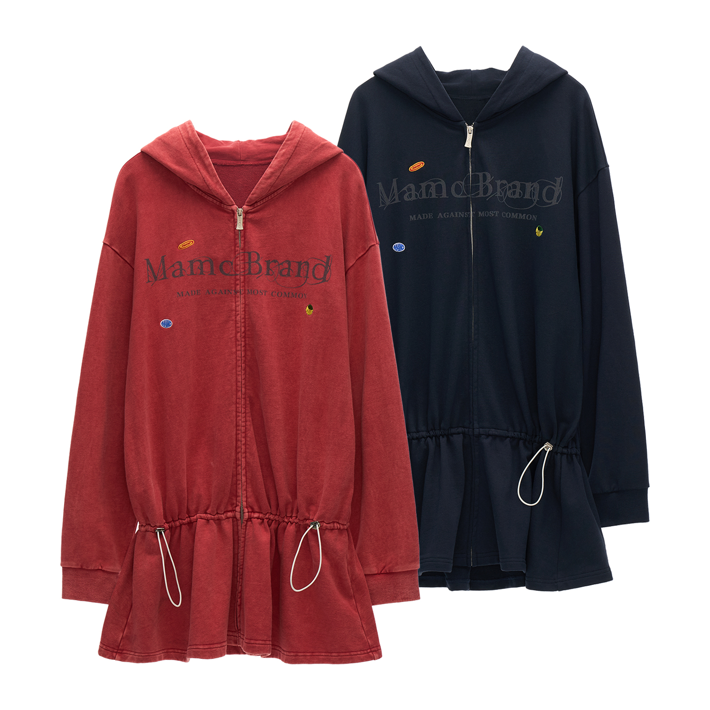 连衣裙女 新款 MAMC水洗做旧logo连帽长袖 拉链卫衣裙休闲2025秋季