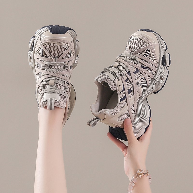 绑带网面透气厚底轻便休闲运动鞋 夏季 女2025新款 9cm内增高老爹鞋