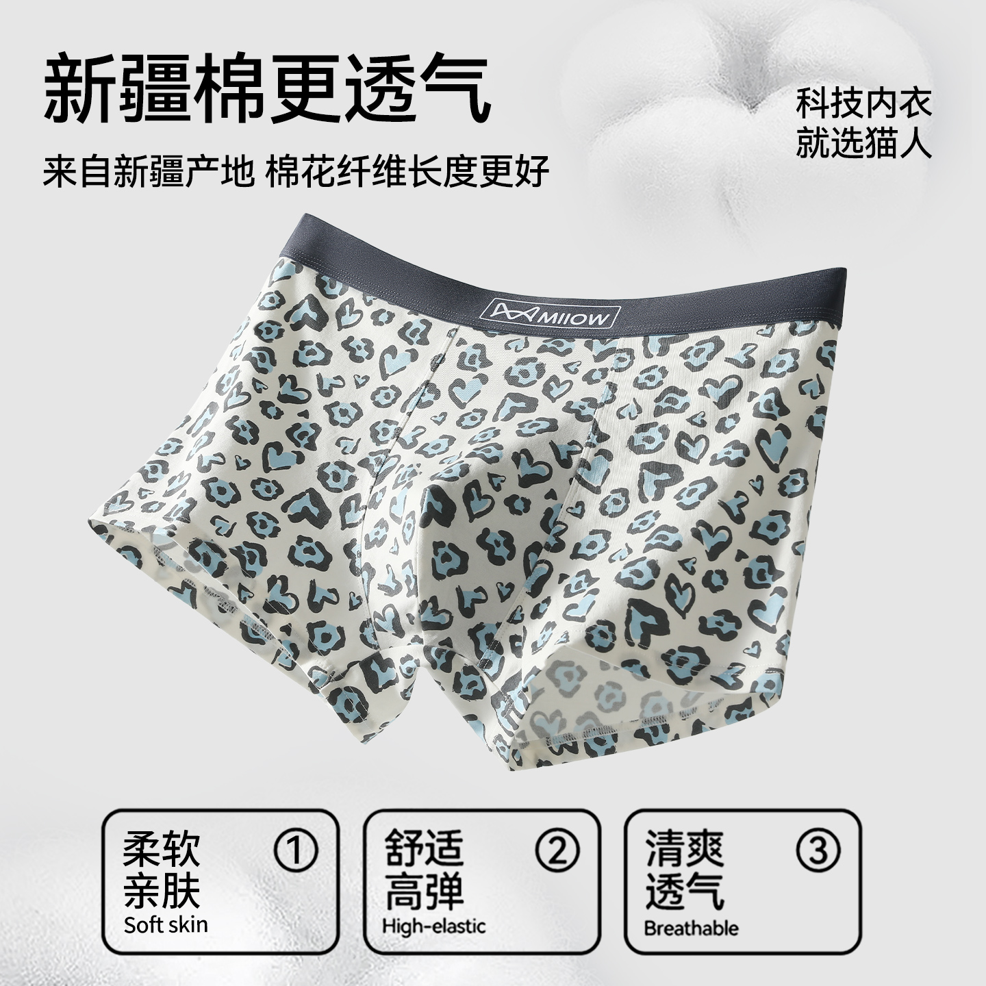 衩男款 猫人男士 防阴囊抗菌潮湿男生平角短裤 纯棉四角2025新款 内裤
