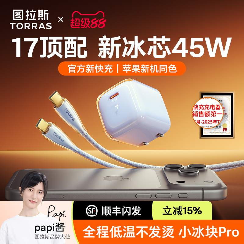 45W适用苹果17充电器40充电头iPhone17ProMax手机快充16数据线15套装 图拉斯小冰块Lite新款 Air iPhone17新品