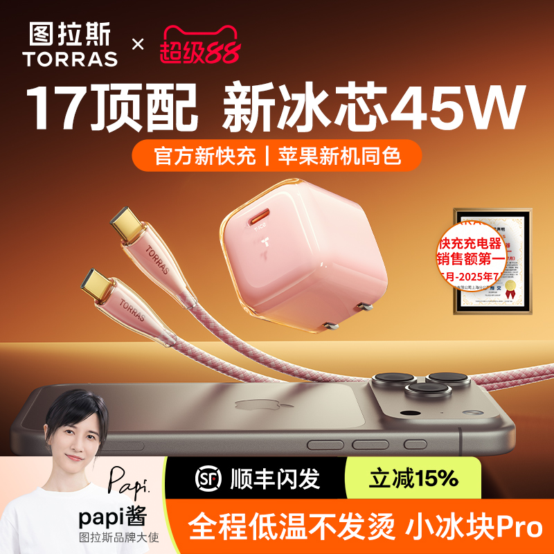 45W适用苹果17ProMax充电器Air手机40W快充头16 图拉斯小冰块Pro新款 15数据线typec一套 iPhone17新机首选