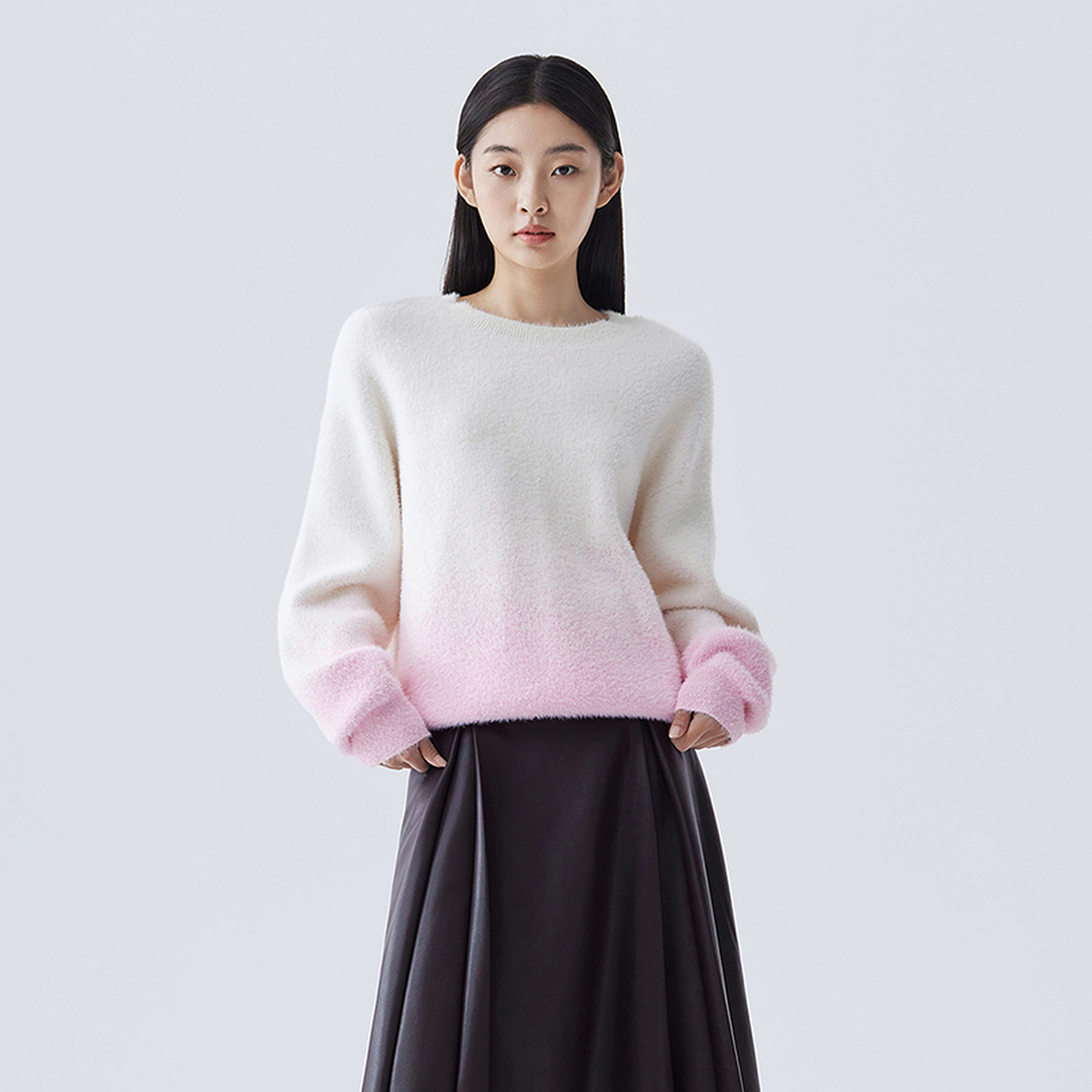 女软糯渐变色毛衣丁达尔女冬装 FIVE PLUS仿水貂毛针织衫