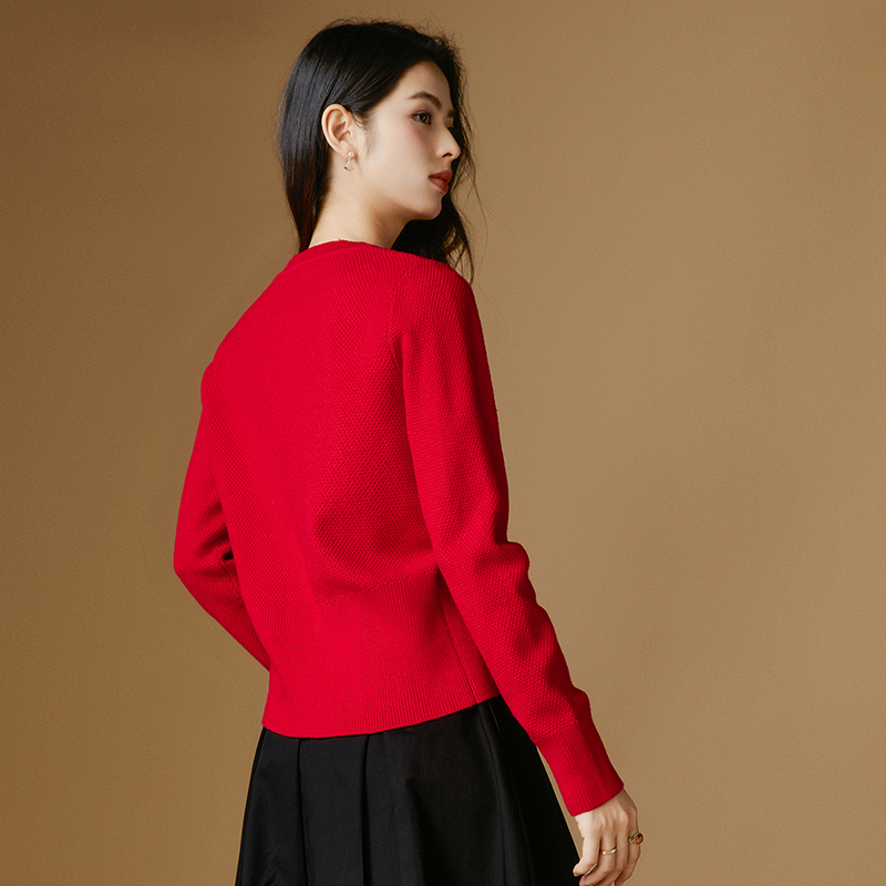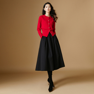 晚白2025年秋新款 喜庆柔软舒适上衣气质百搭针织外套女