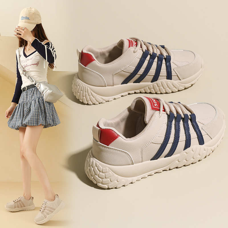 女款 休闲运动鞋 2025秋季 棕色内增高设计感小众时尚 新款 人本德训鞋