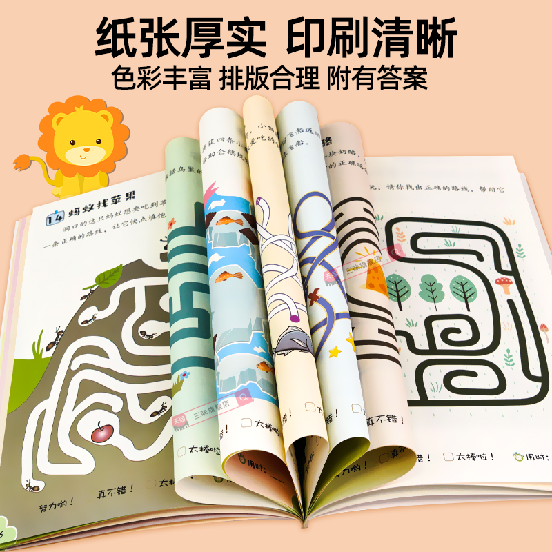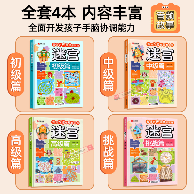 儿童专注力训练益智玩具走迷宫大冒险思维游戏3 8岁注意力训练智力挑战锻炼大脑逻辑思维左右脑开发书高难度 迷宫训练书 全套4册