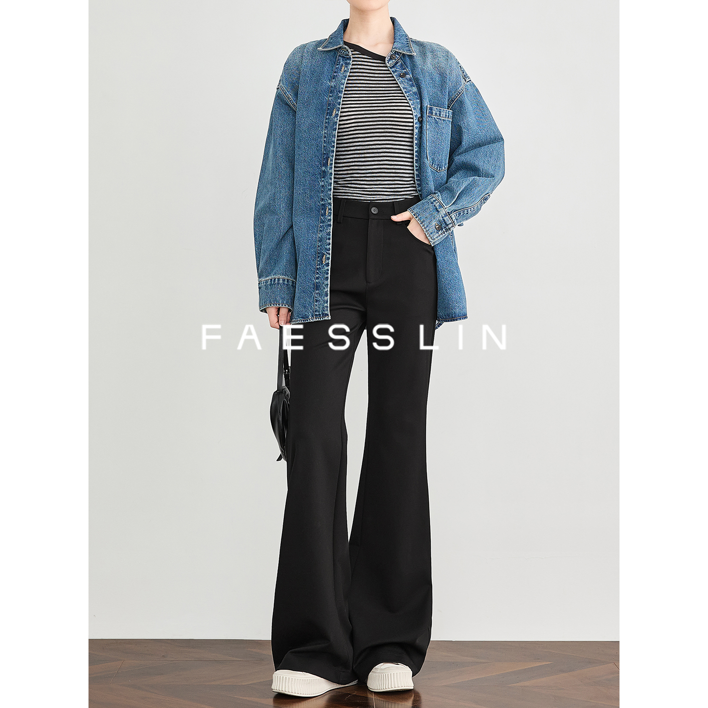 显瘦直筒百搭喇叭裤 修身 女2025秋冬新款 FAESSLIN黑色微喇休闲裤