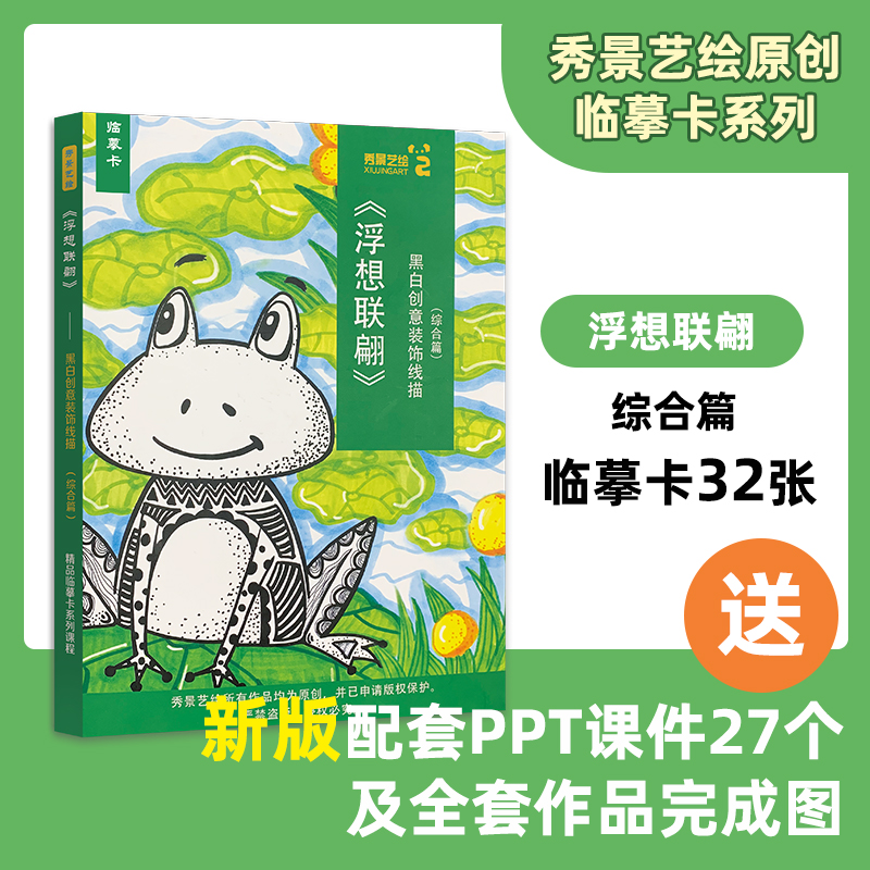秀景艺绘浮想联翩黑白创意装 饰线描临摹卡综合篇少儿美术创意素描考级画室临摹卡素材