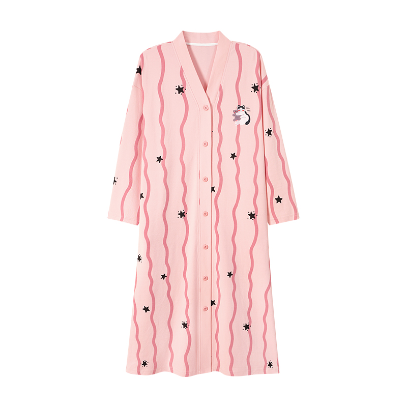 2025秋新款 长袖 甜美宽松舒适可外穿家居服 睡裙春秋季 猫人纯棉女款