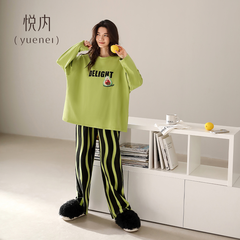 宽松加大码 都市丽人纯棉睡衣女款 套装 长袖 家居服可外穿 夏2025新款