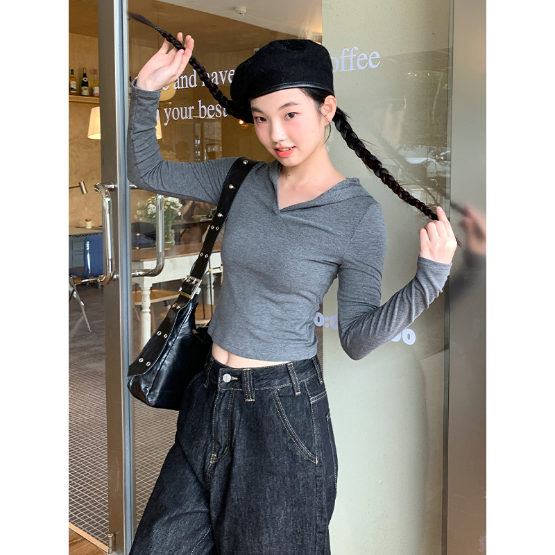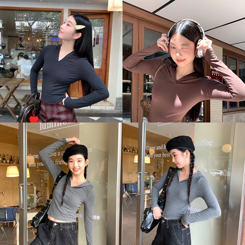 可外穿长袖 KHV真维斯连帽打底衫 修身 新款 t恤 女内搭上衣2025春秋季