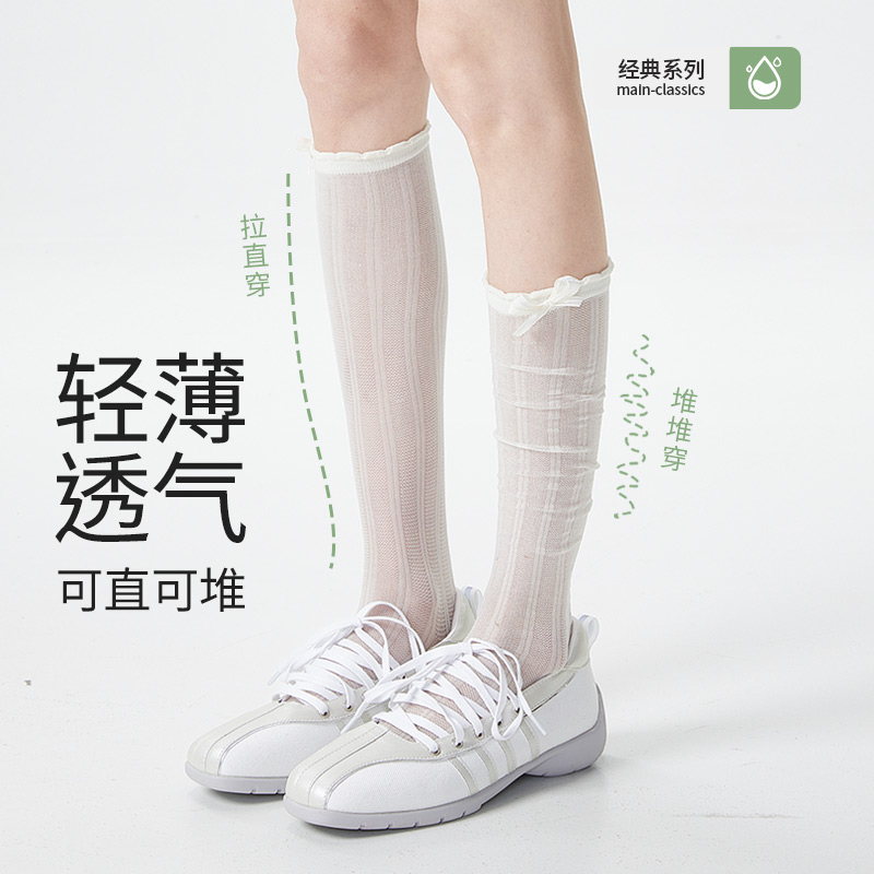 薄款 黑色袜子女中筒袜春秋季 堆堆长筒过膝袜jk压力瘦腿小腿袜夏季