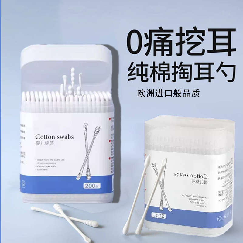 新生婴儿棉签儿童小棉签耳勺头超细宝宝掏耳朵棉签棒小头棉棒盒装