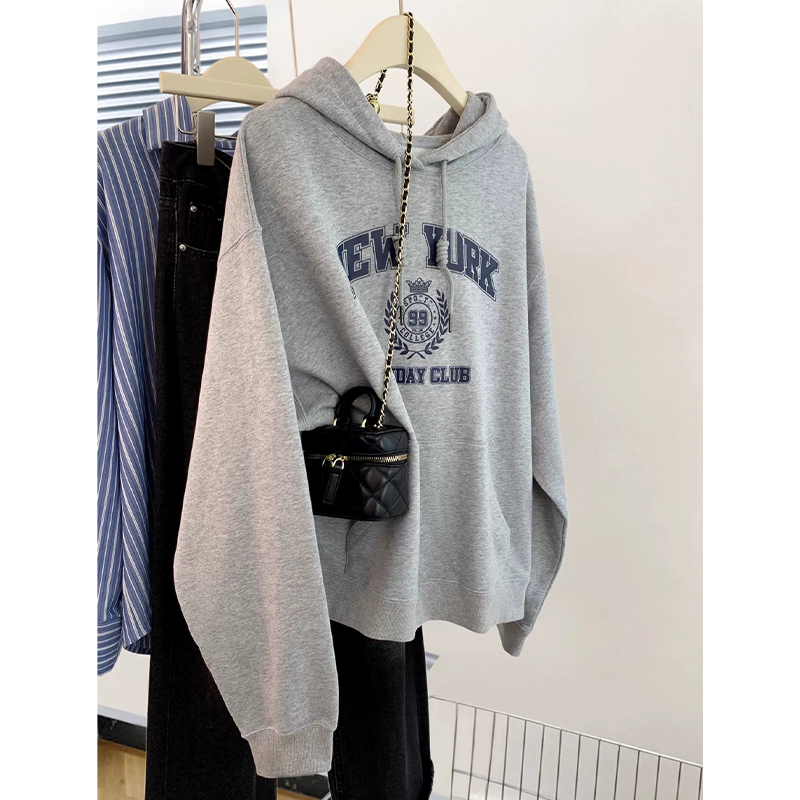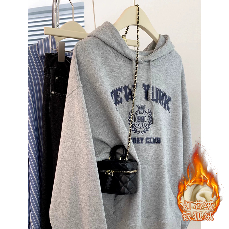 洋气胖mm大码 灰色连帽卫衣外套女秋冬季 时尚 爆款 百搭上衣 2025新款