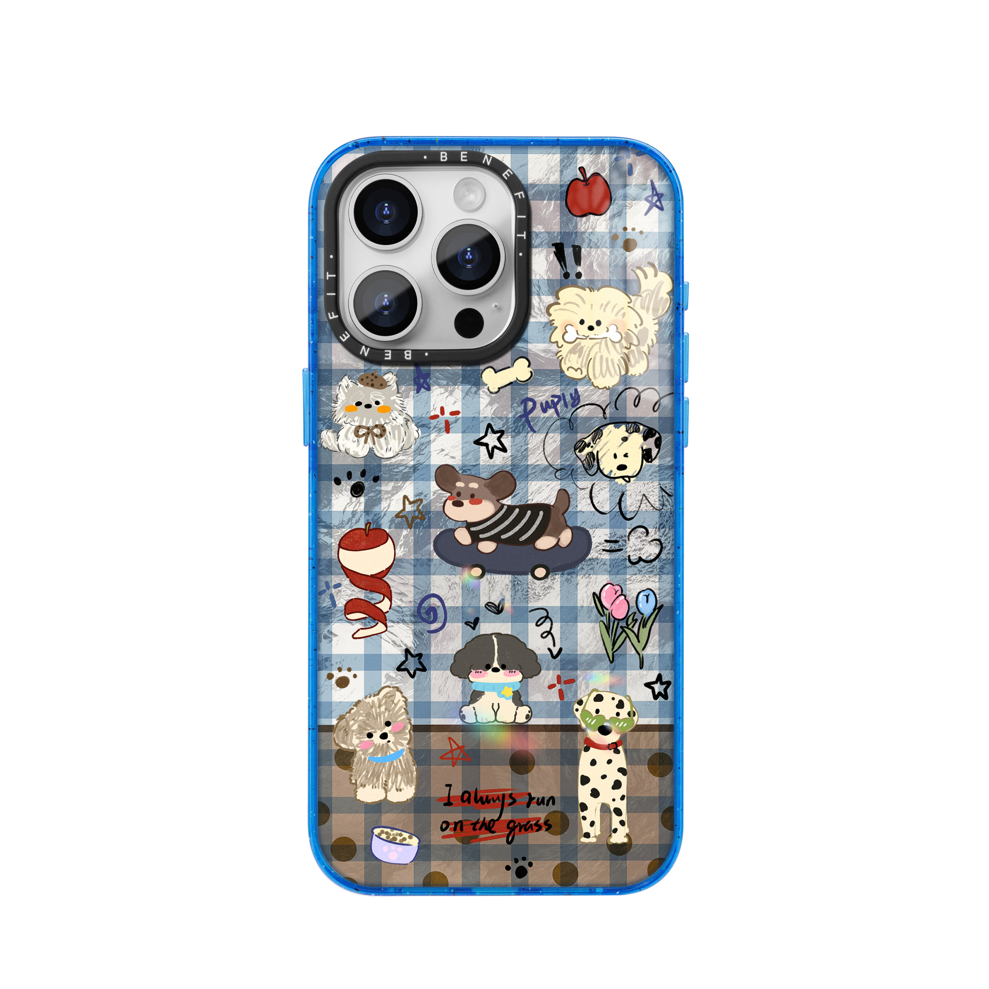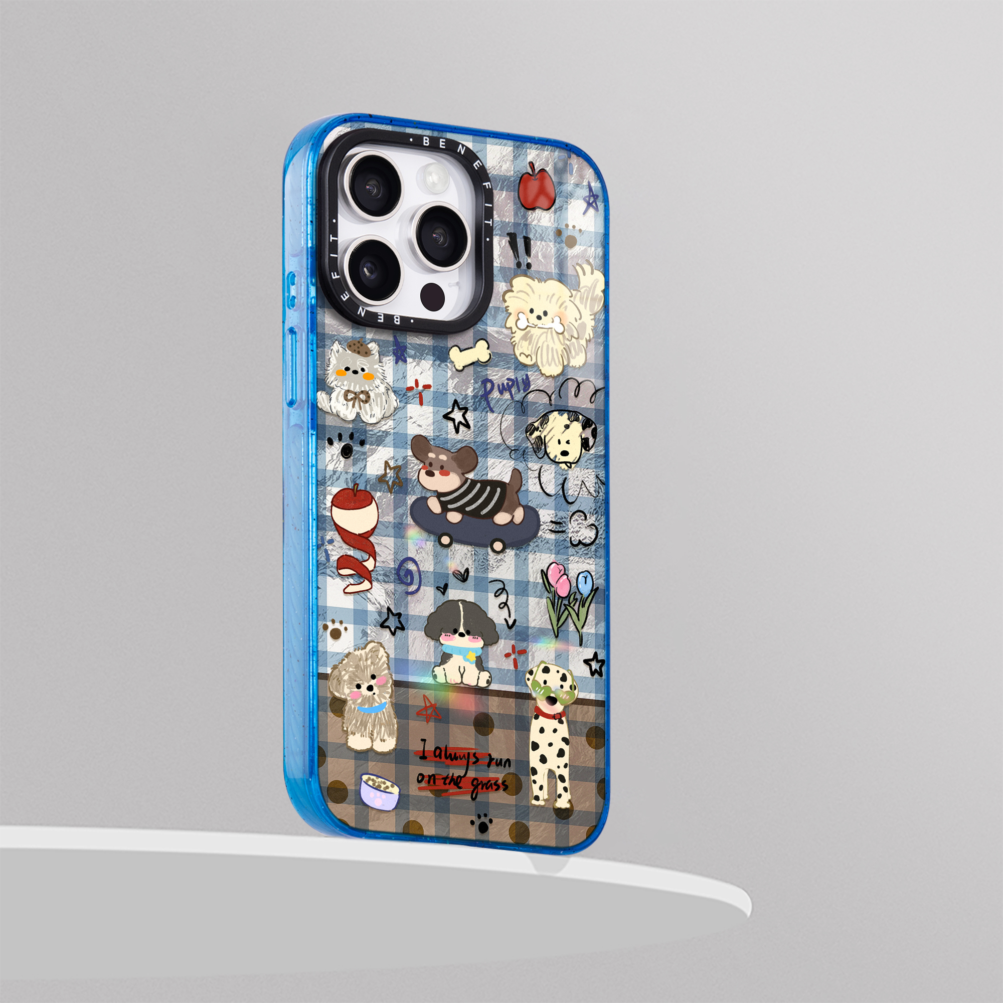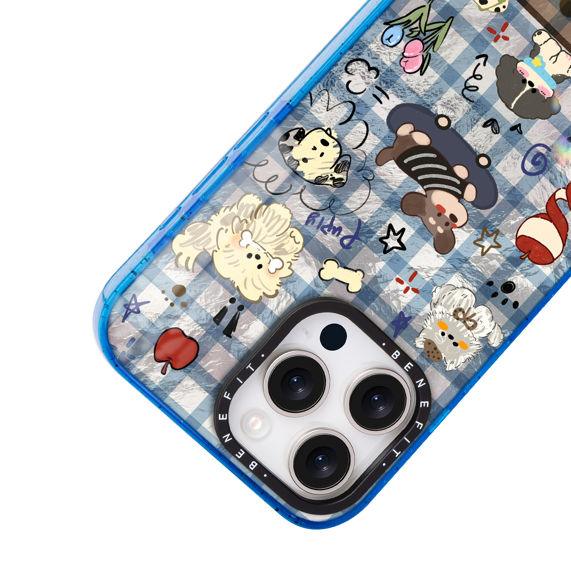 benefit复古格纹卡通涂鸦小狗17适用于iphone16promax苹果15PRO晶盾磁吸手机壳13新款 14防摔12冰川纹彩色边框