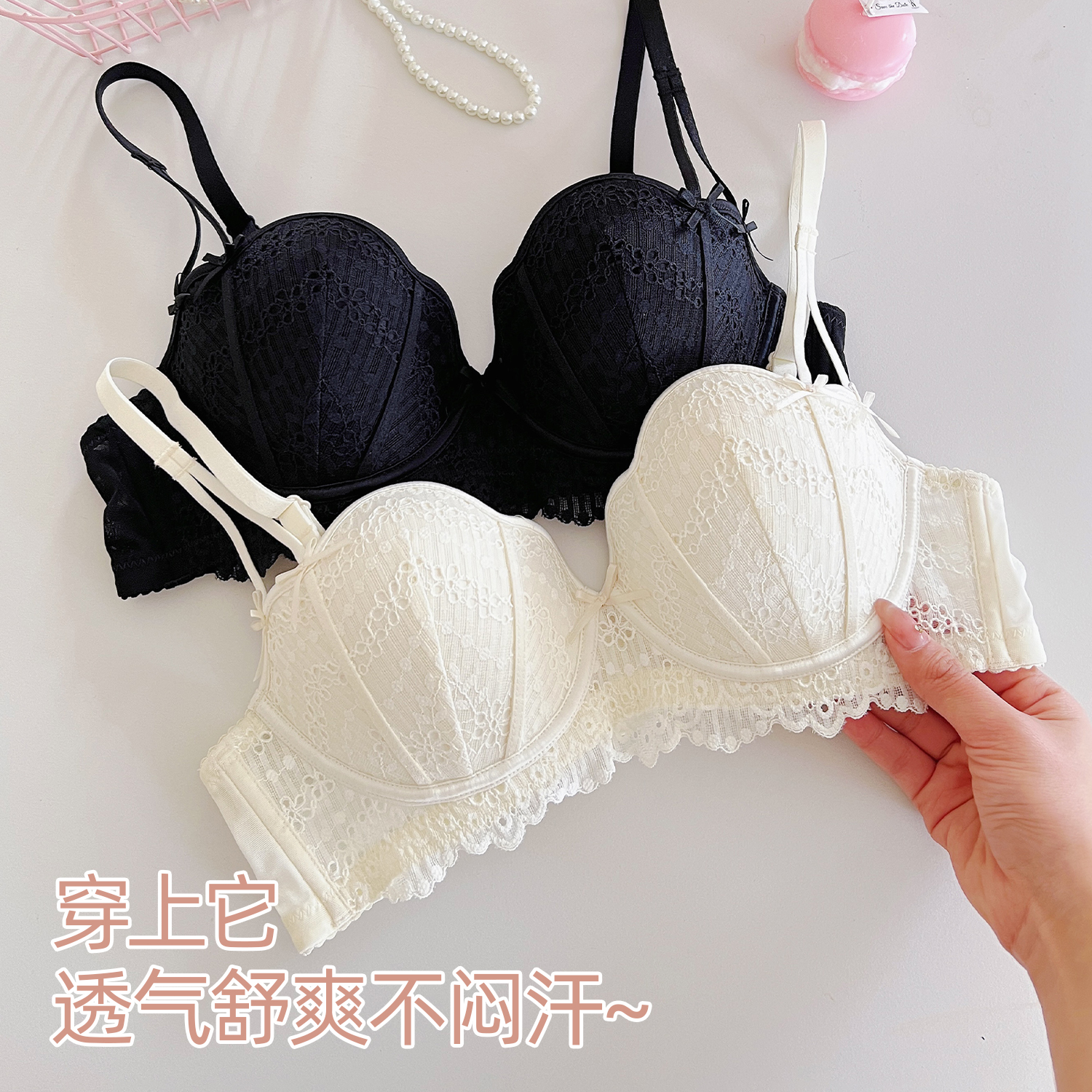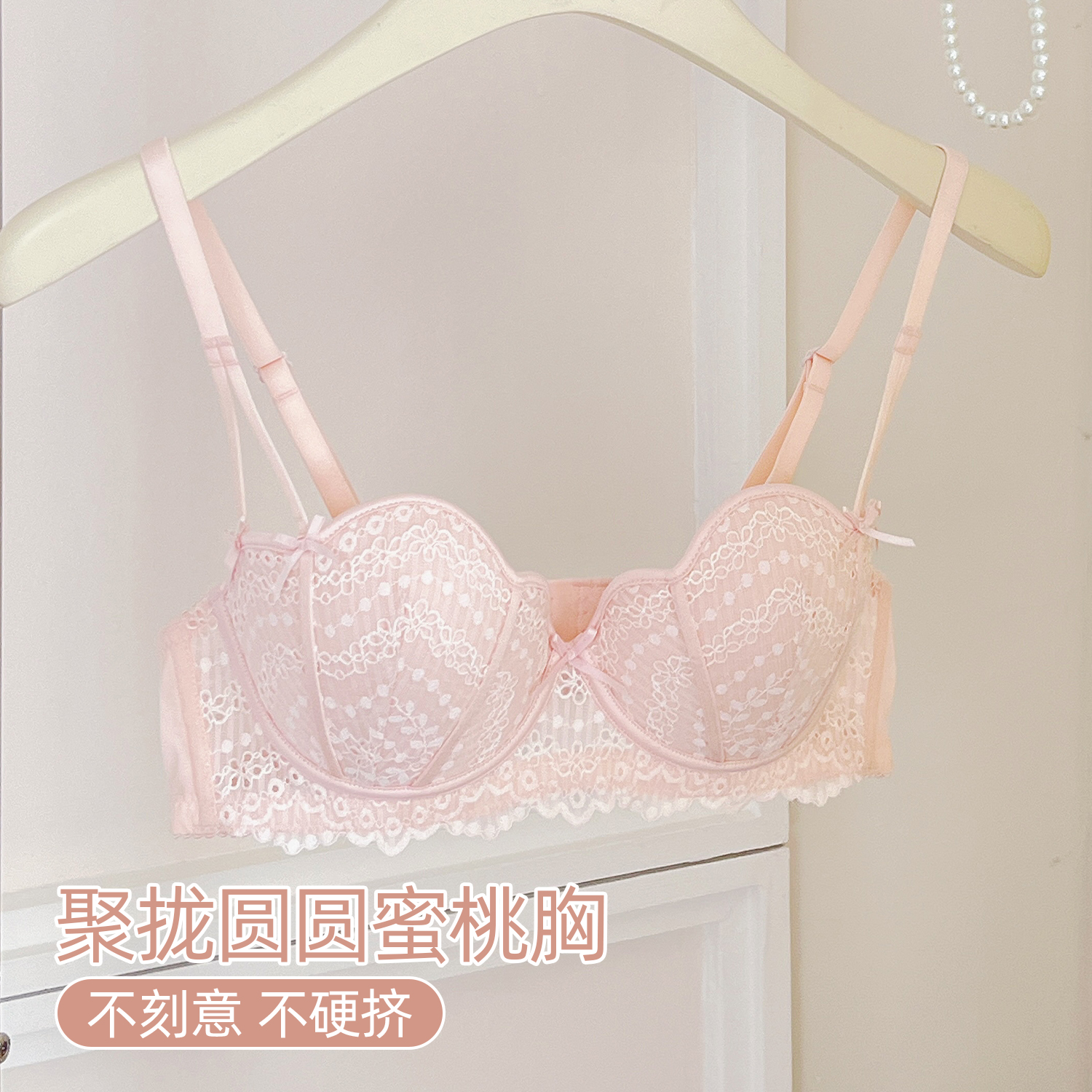 六只兔子蕾丝内衣女小胸聚拢无钢圈透气薄款 防下垂甜美显瘦文胸罩