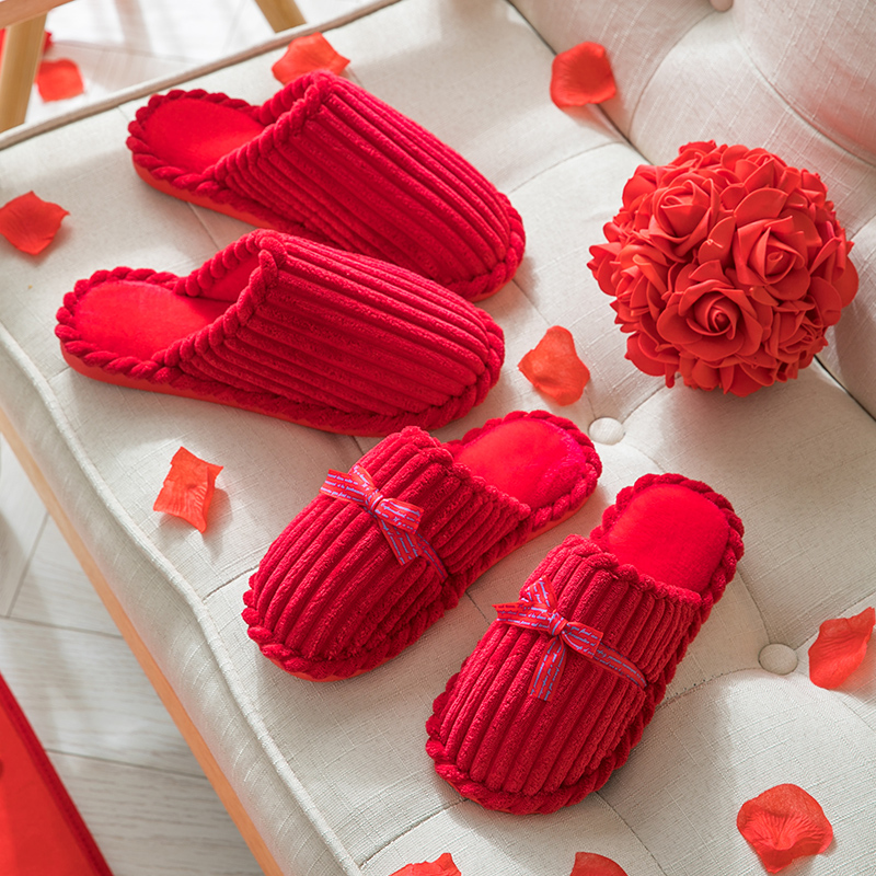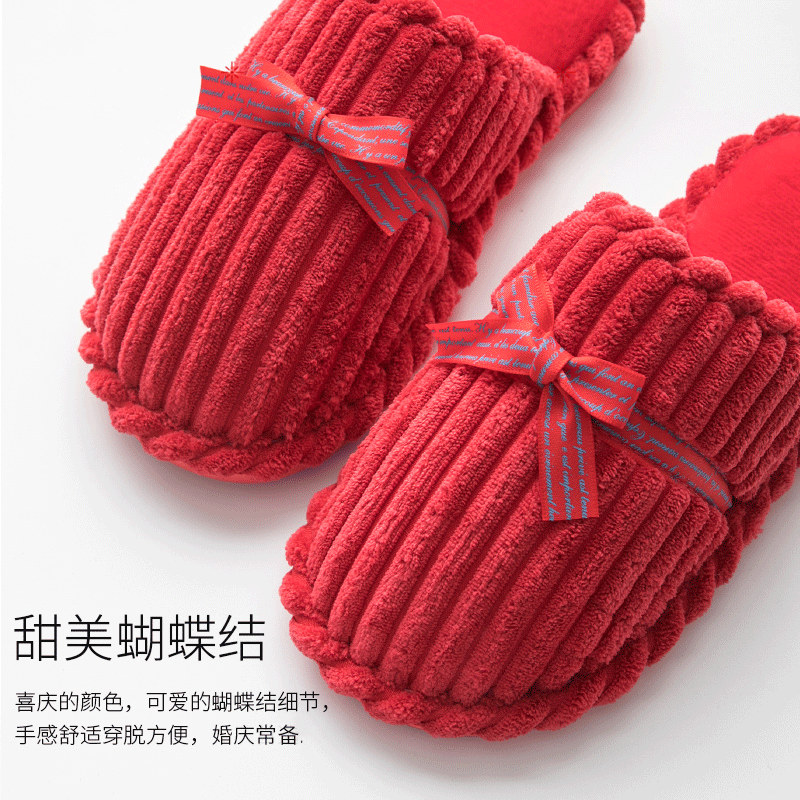 女新款 居家用陪嫁婚庆情侣新婚棉拖鞋 喜庆红色一对秋冬季 结婚拖鞋