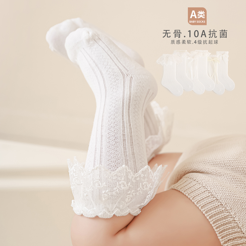 婴儿袜子春秋薄款 中筒袜女童宝宝蕾丝白色花边公主小腿袜高筒长筒