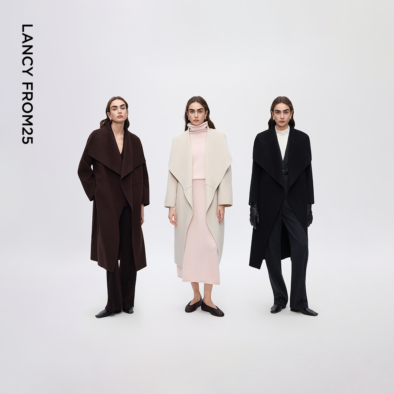 秋水伊人绵羊毛翻领大衣女慵懒毛呢外套 衣橱直播间 所有女生