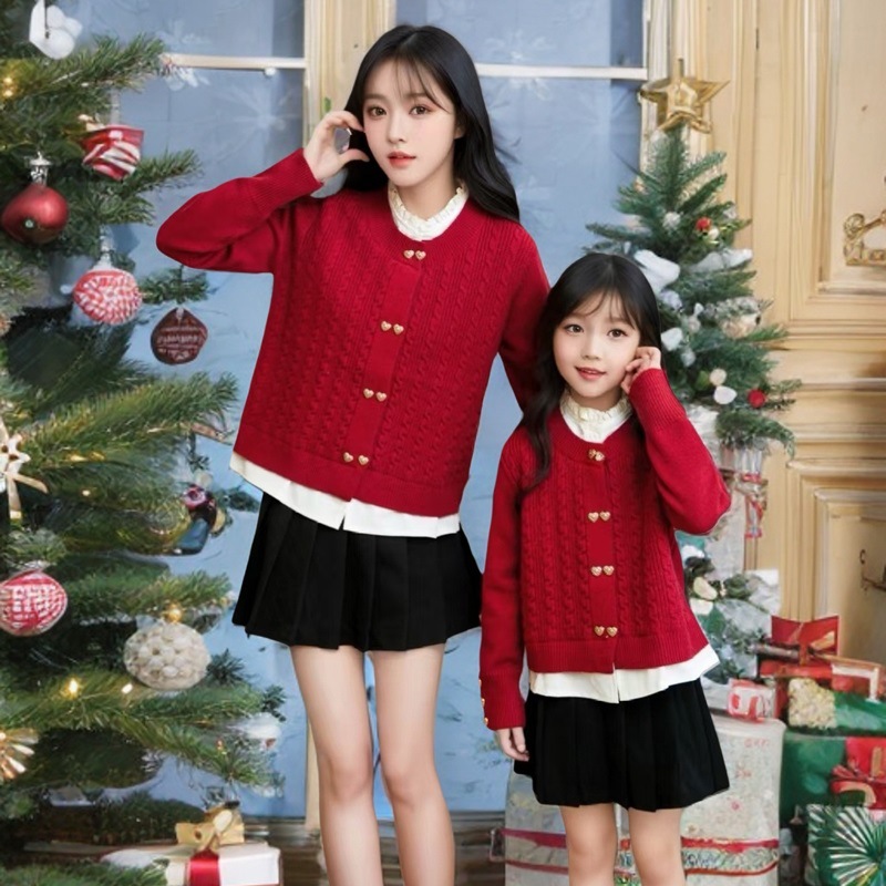 安可拉红毛衣2025秋冬新款 母女高端立领假两件拜年喜庆外套 亲子装