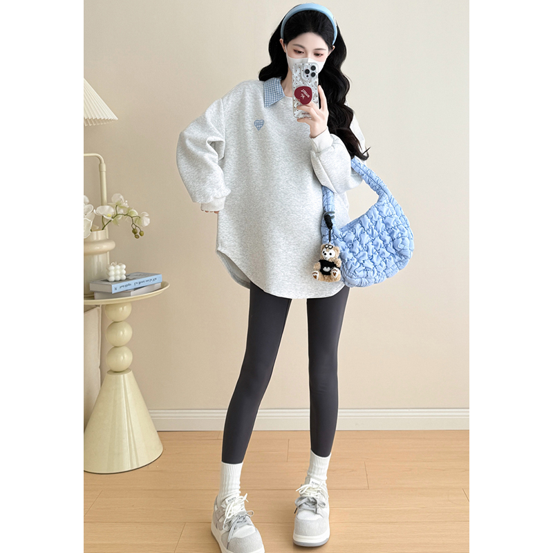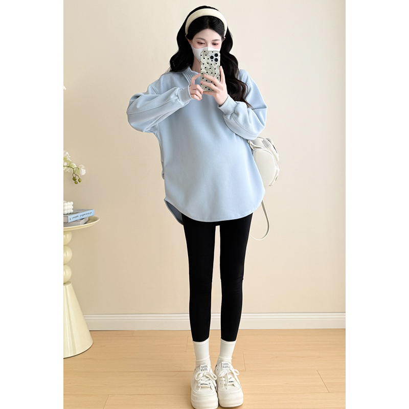 潮妈长袖 孕妇浅蓝色套装 时尚 孕期穿搭韩版 卫衣两件套 春秋2025新款