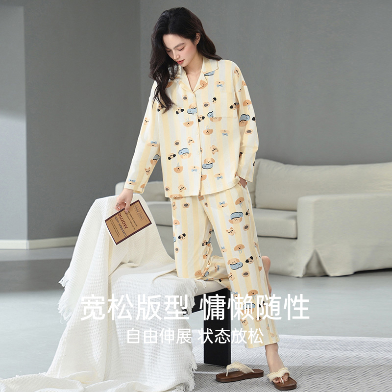 家居服可外穿 长裤 新一系2025新款 卡通小猫纯棉睡衣女士春夏秋薄款