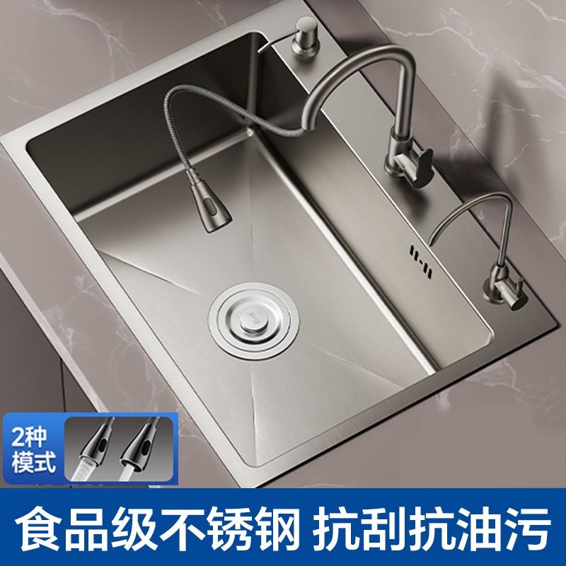 家用304不锈钢水槽厨房洗碗大单槽洗菜盆台上下盆加厚手工槽橱柜