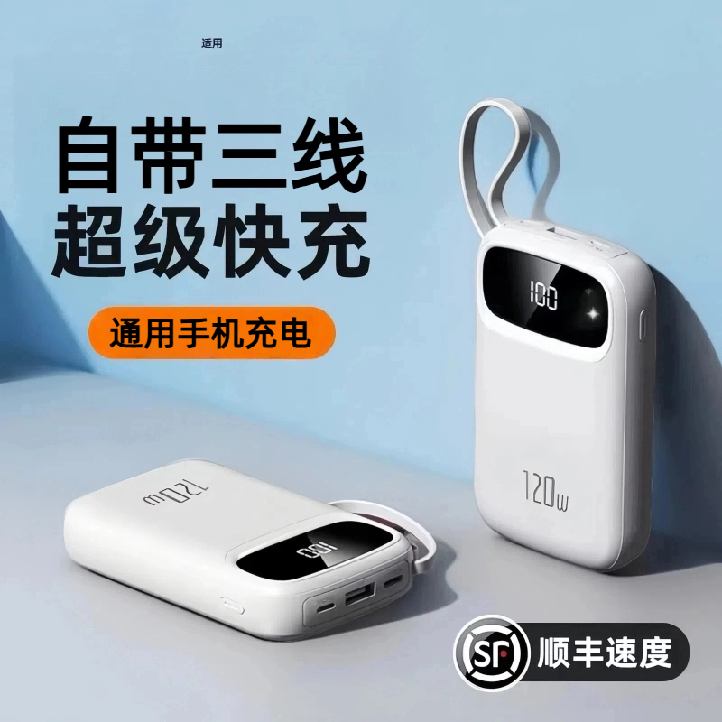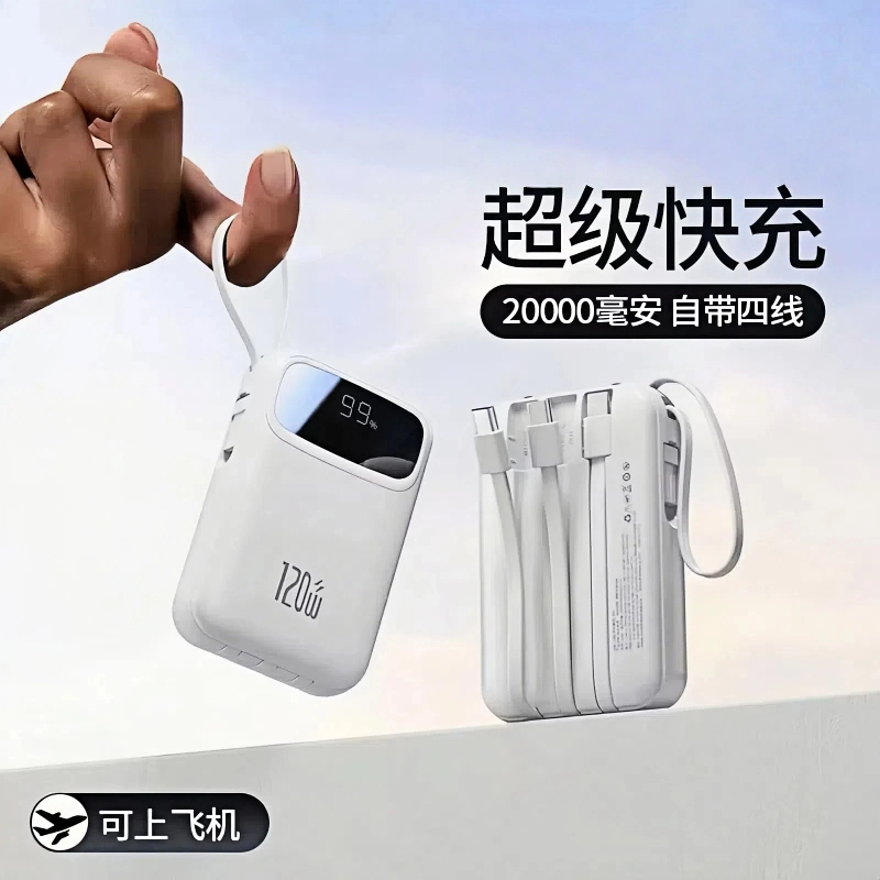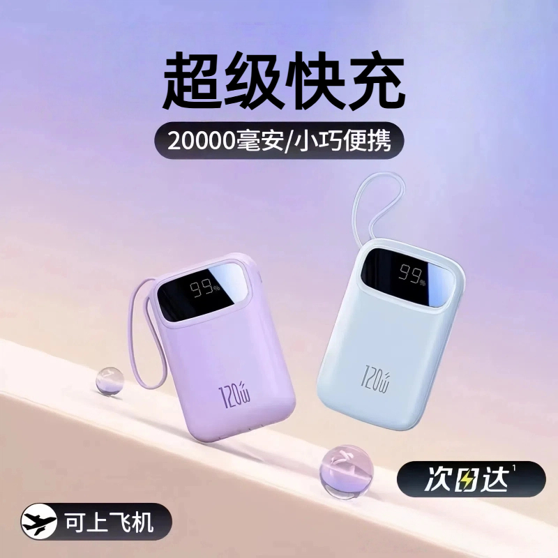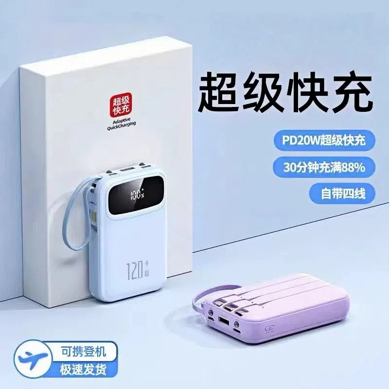 超级快充电宝超大容量20000毫安超薄自带线闪充户外移动电源适用于苹果vivoppo 可上飞机新款 3C安全认证