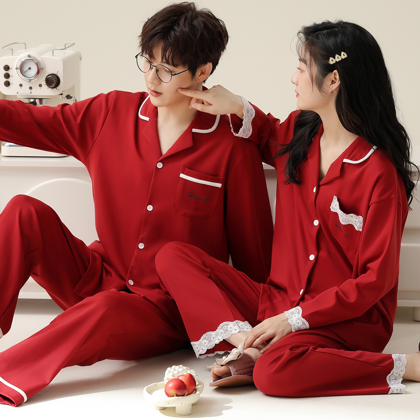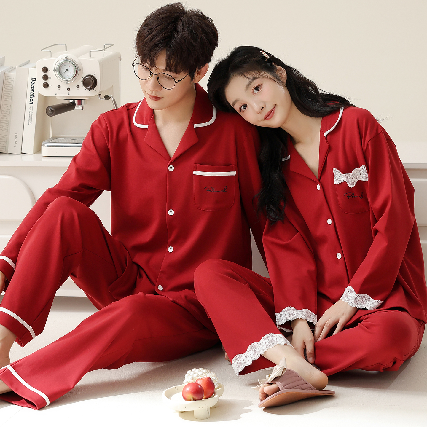 纯棉男女款 春秋季 新婚本命年家居服 长袖 卡之恋红色睡衣结婚情侣装