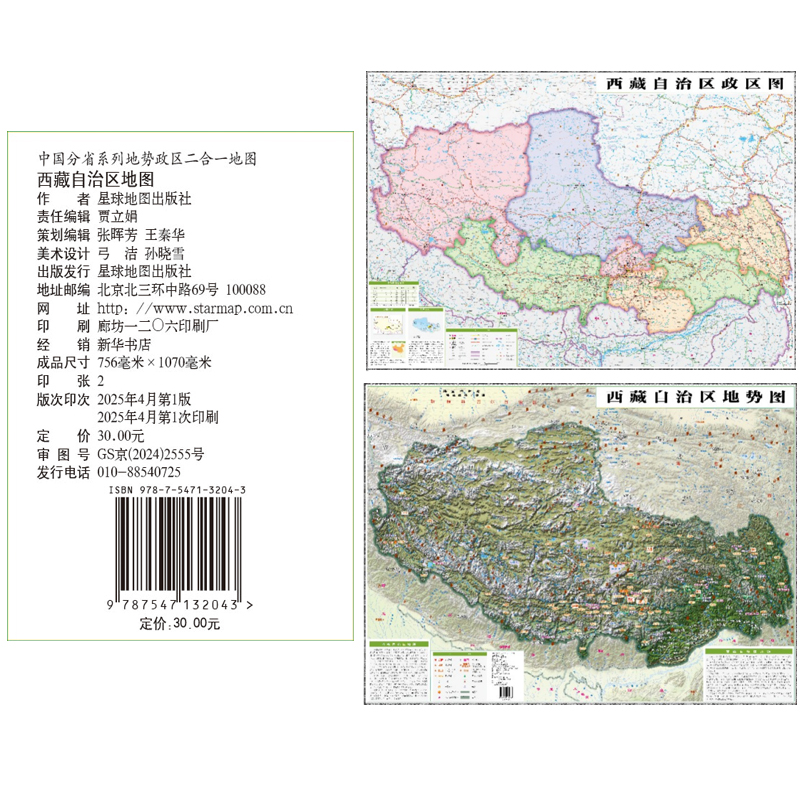 西藏自治区地图 107×75.6cm 星球地图出版 星球社直营 社 防水折叠地图 2025新版 中国分省系列地图 地势政区二合一
