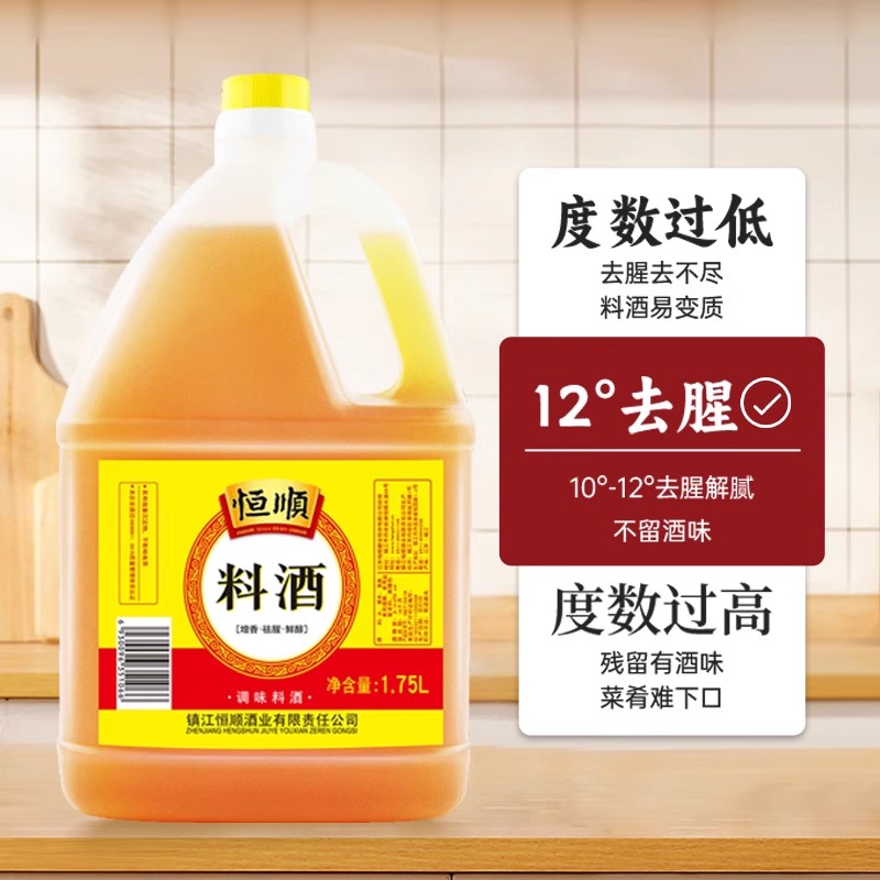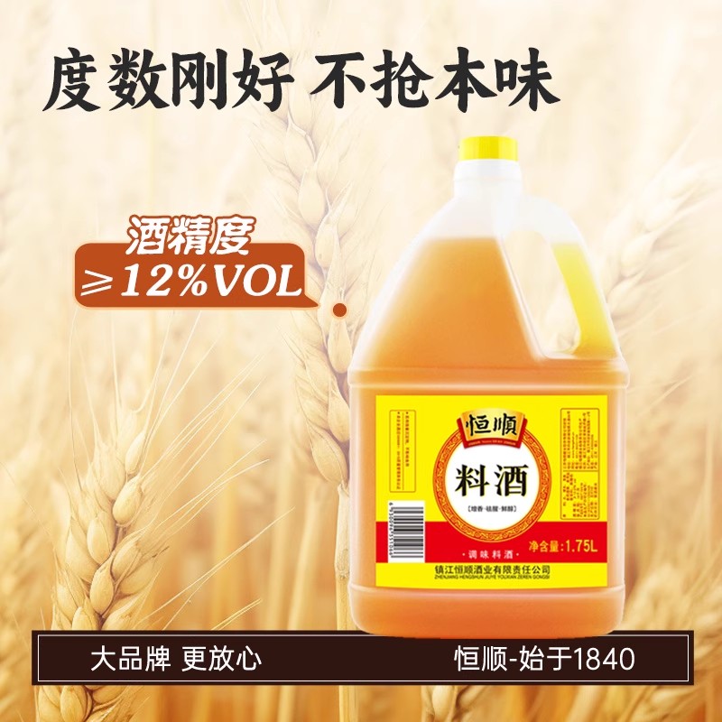 恒顺黄酒 增香海鲜牛羊肉提鲜厨房调料家用 料酒1.75L去腥解膻