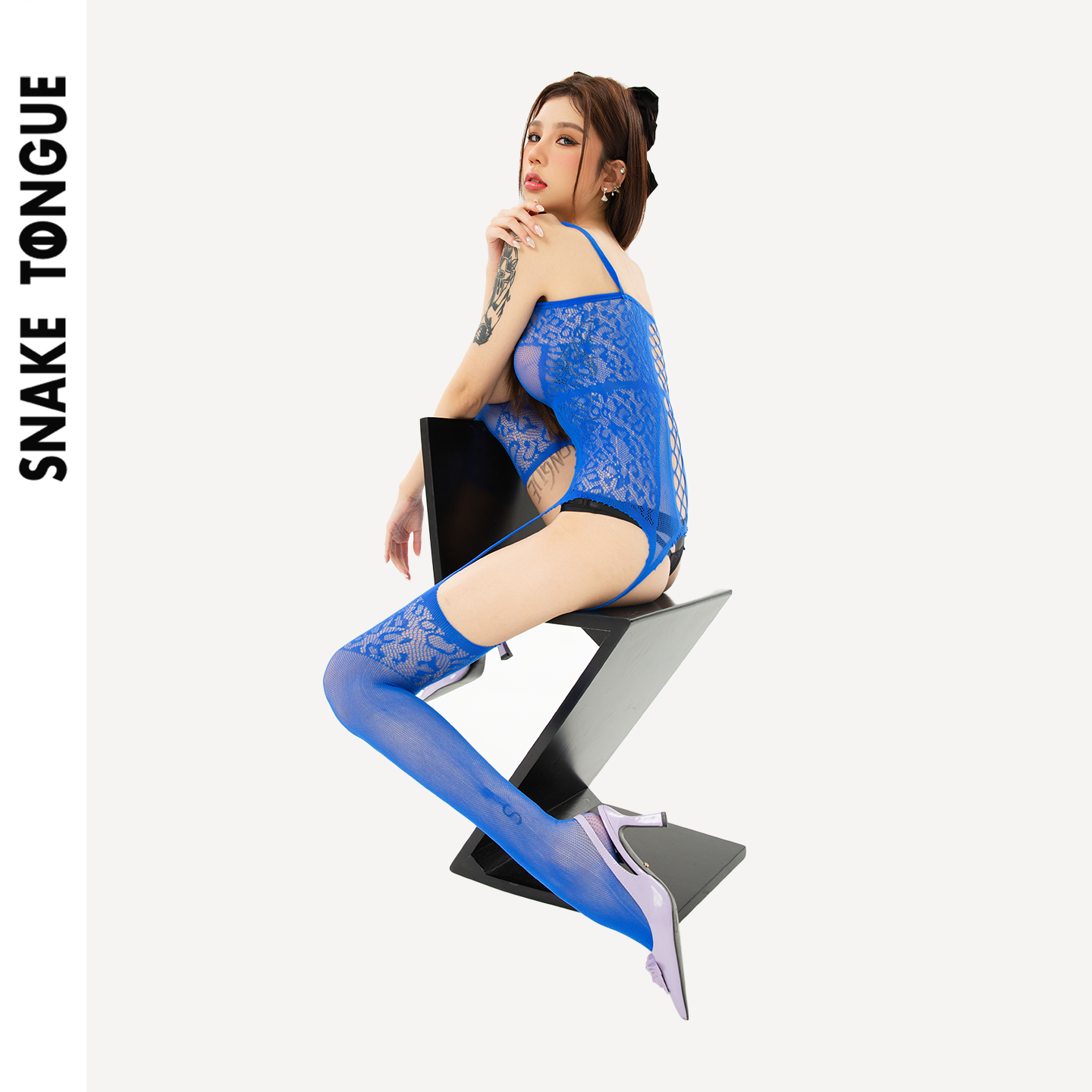 蛇舌「彩网」连体网袜性感透视吊带连身网衣提花镂空打底开档丝袜