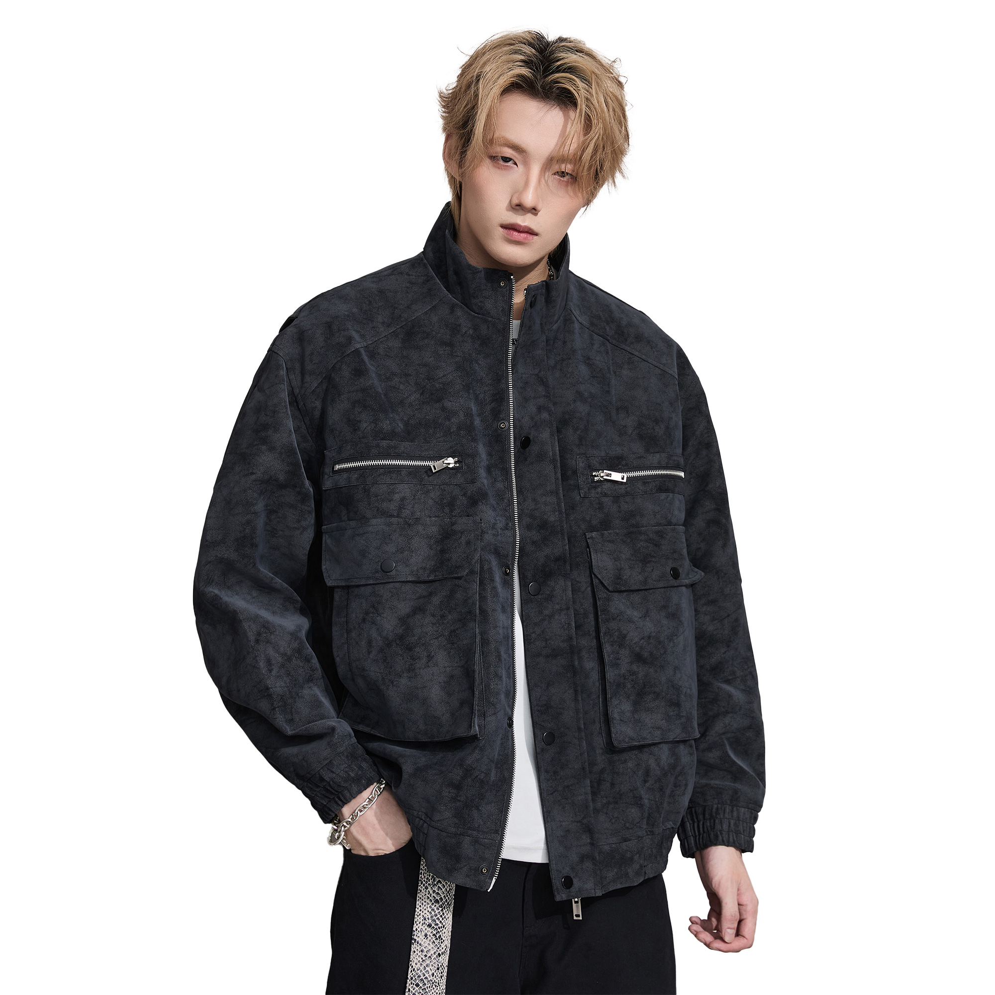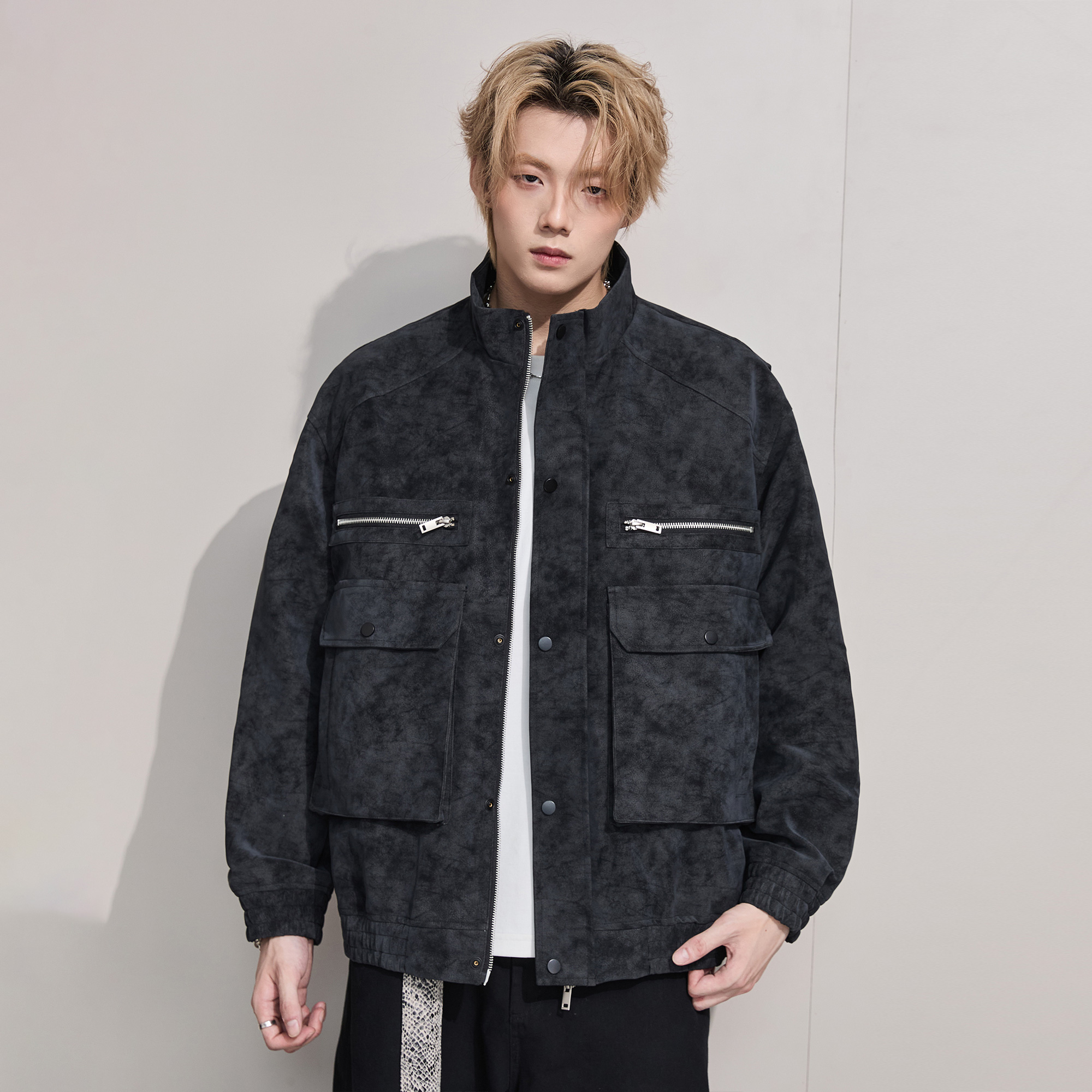 情侣痞帅宽松休闲翻领外套 高街机车皮衣夹克男秋冬新款 ALLIN 美式
