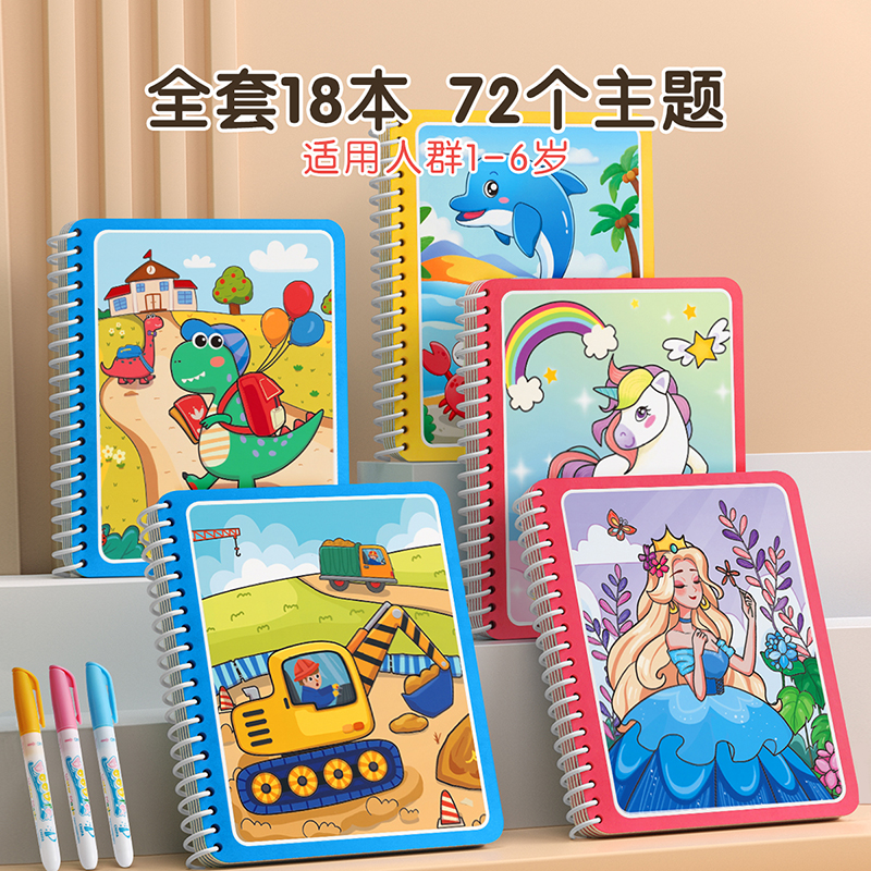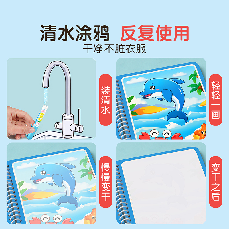 儿童神奇水画本反复涂鸦清水笔画笔绘画画板书绘本两岁一宝宝涂色