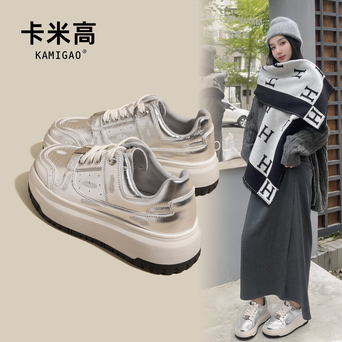面包鞋 厚底鞋 子增高运动鞋 FILA斐乐官方女鞋 休闲鞋 板鞋 秋季 斑斓鞋