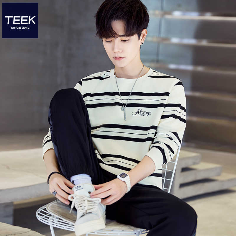 100%纯棉长袖 宽松遮肉显瘦套头外穿拼接薄卫衣B T恤上衣女秋冬韩版