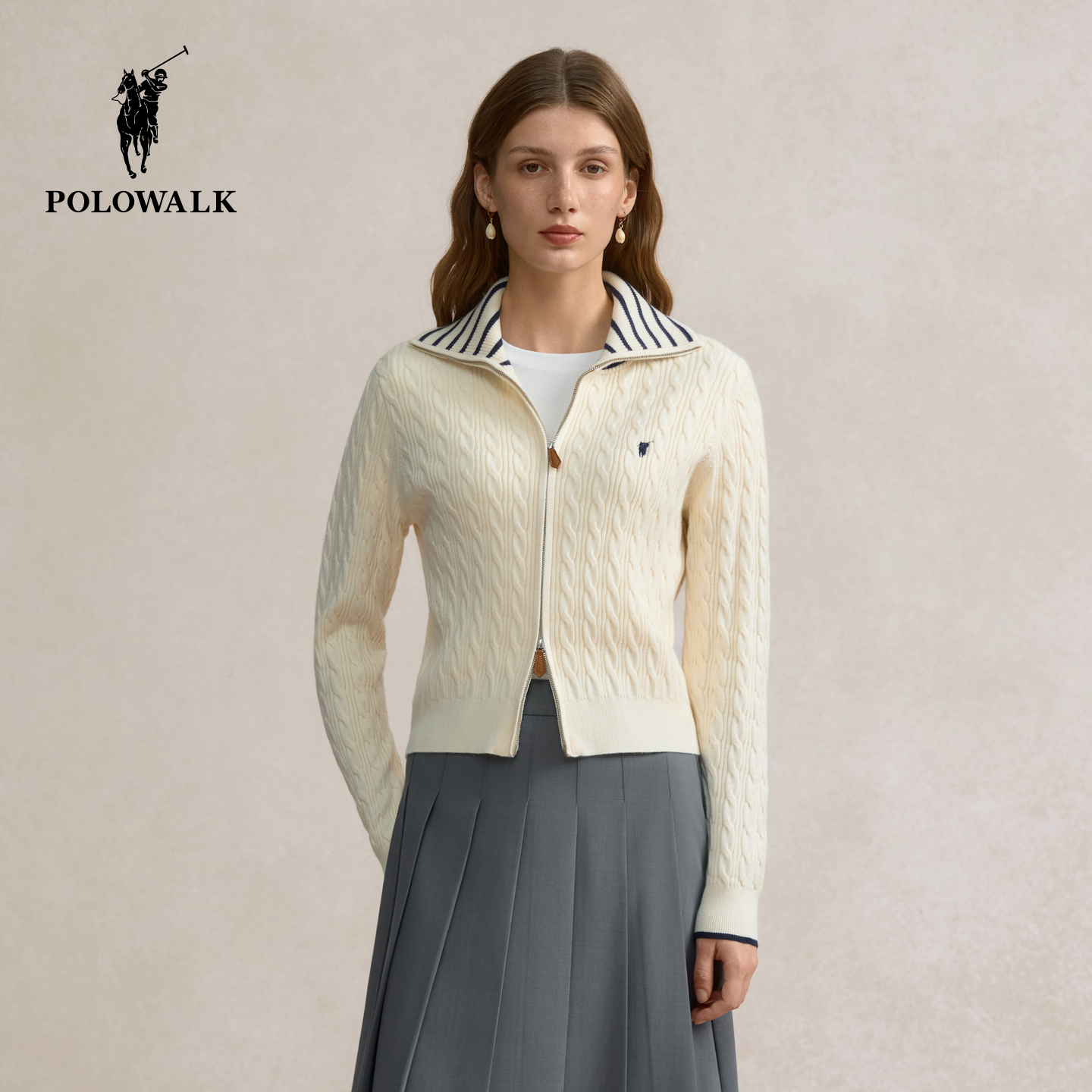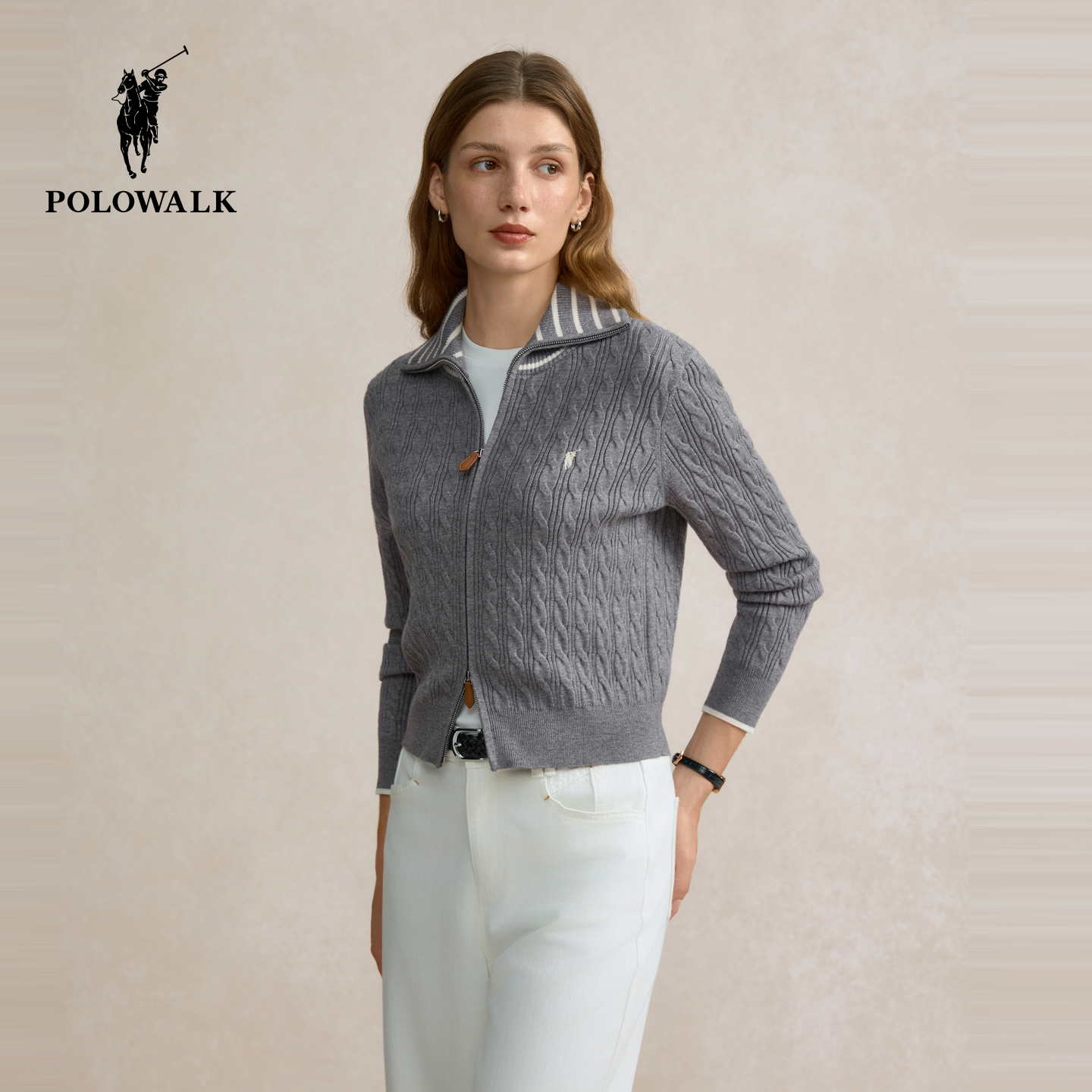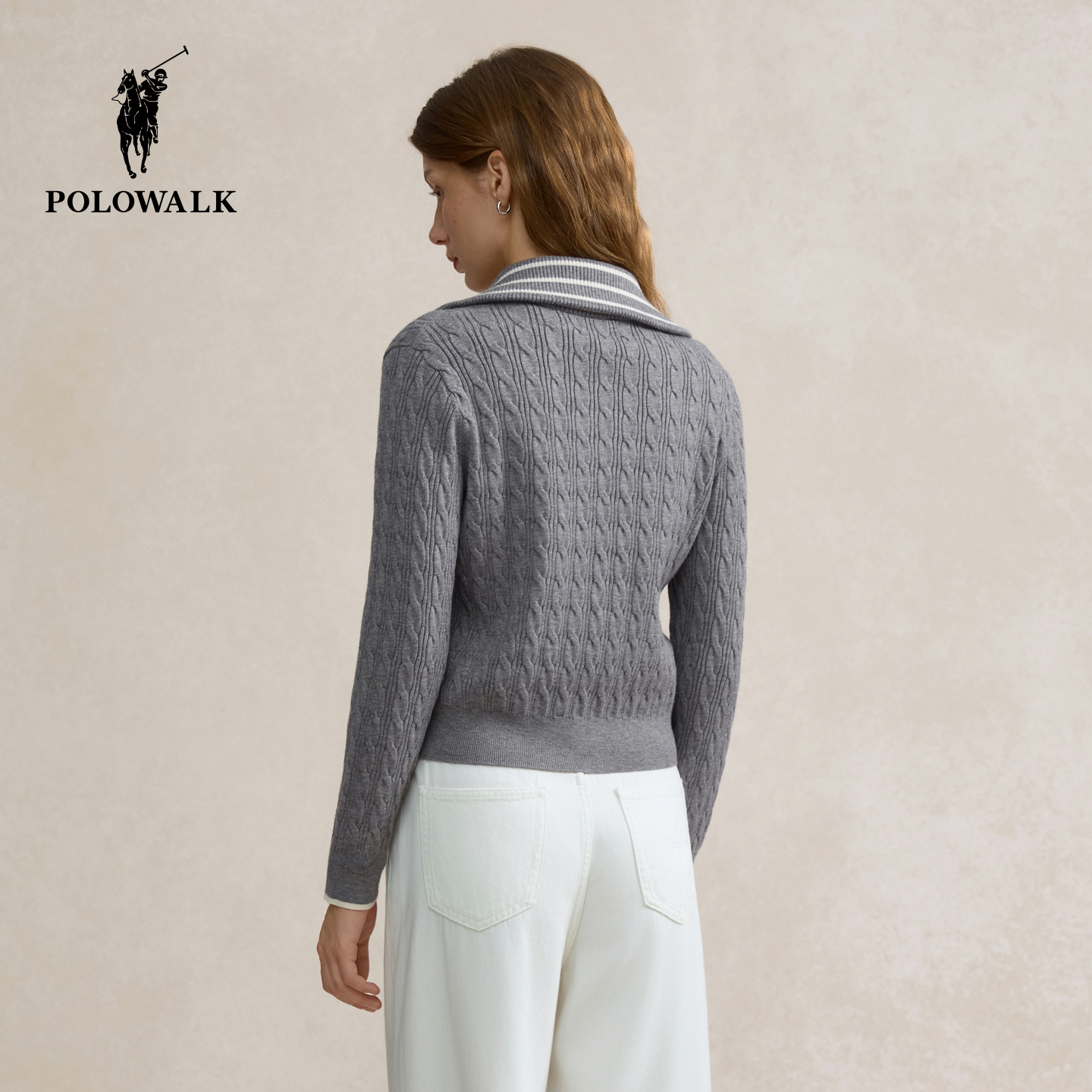 老钱风外搭休闲绞花毛衣外套 女装 POLOWALK针织开衫 外套25秋冬新款