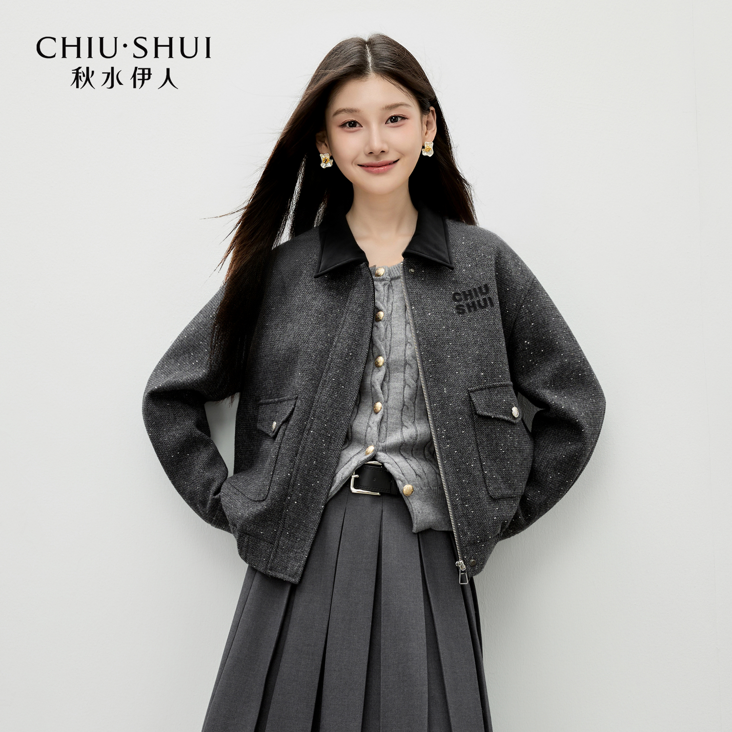 通勤经典 新款 百搭翻领上衣 外套女2025年冬季 秋水伊人字母刺绣短款