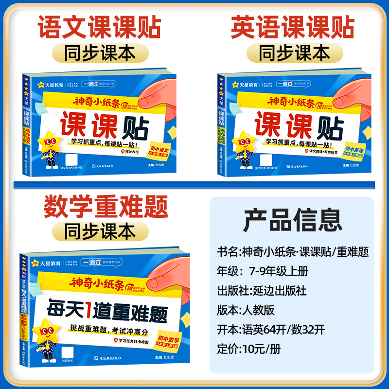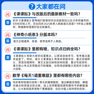 2025秋天星教育神奇小纸条语文英语新版 数学重难题初中七八九年级上册同步课本教材一遍过课堂笔记学霸速记必刷题 预习课课贴人教版