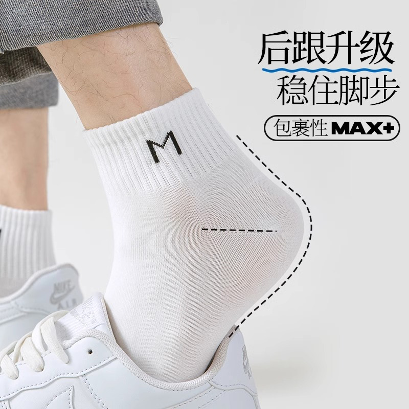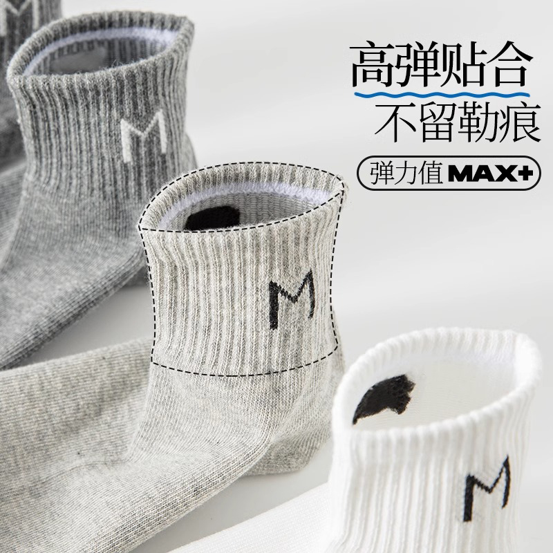 袜子男纯棉春秋款 中筒袜 短袜7a抗菌灰色无骨防臭脚吸汗青少年男士