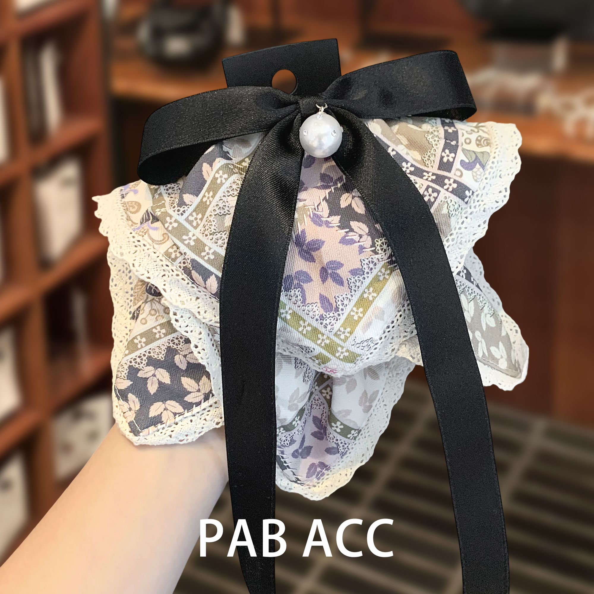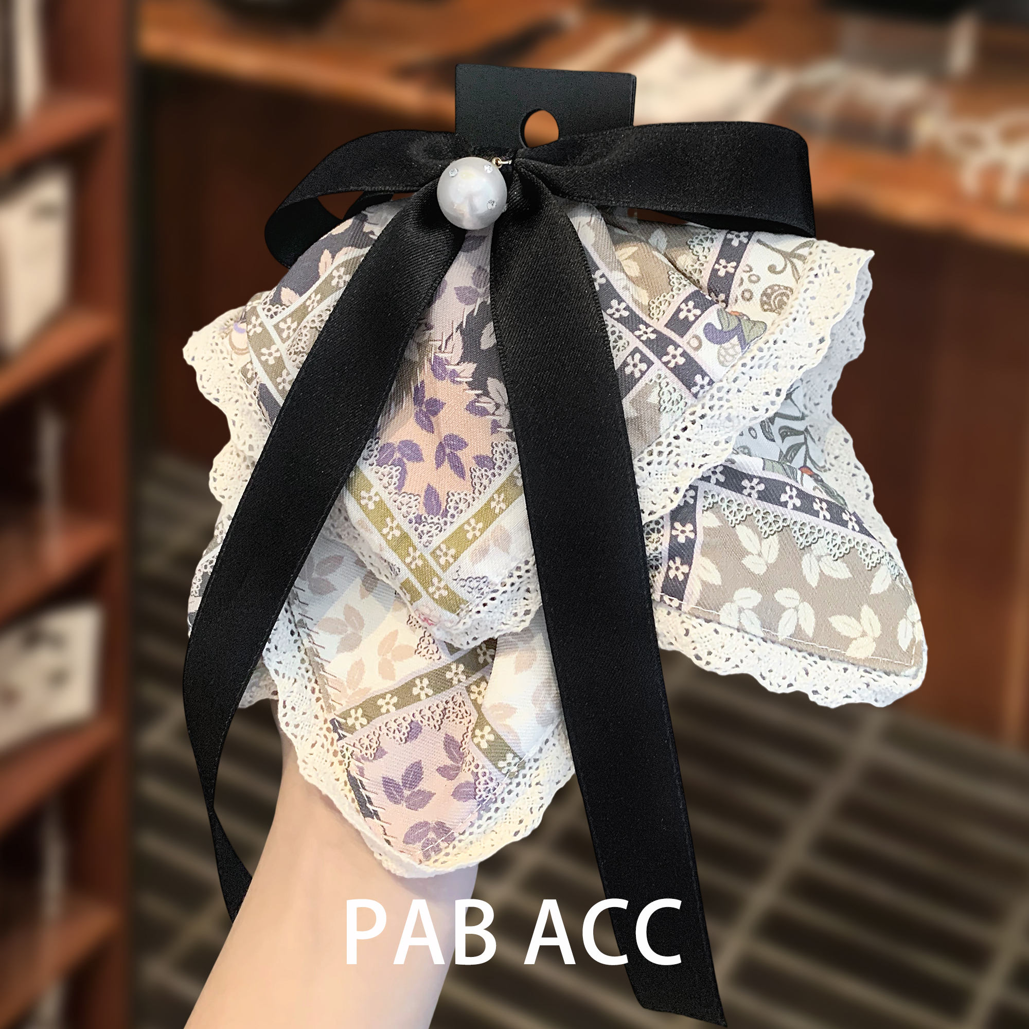 韩国清新甜美蕾丝花边抓夹小众设计感森系蝴蝶结珍珠低马尾盘发夹