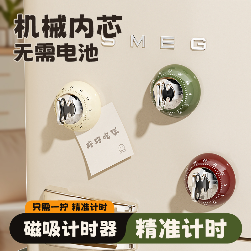 磁吸计时器厨房提醒器机械做饭闹钟定时器大声音可视化时间管理器
