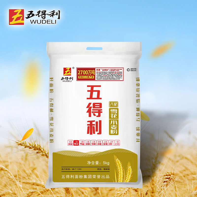 五得利八星雪花5kg面粉家用小麦粉混沌饺子馒头包子新鲜日期中筋