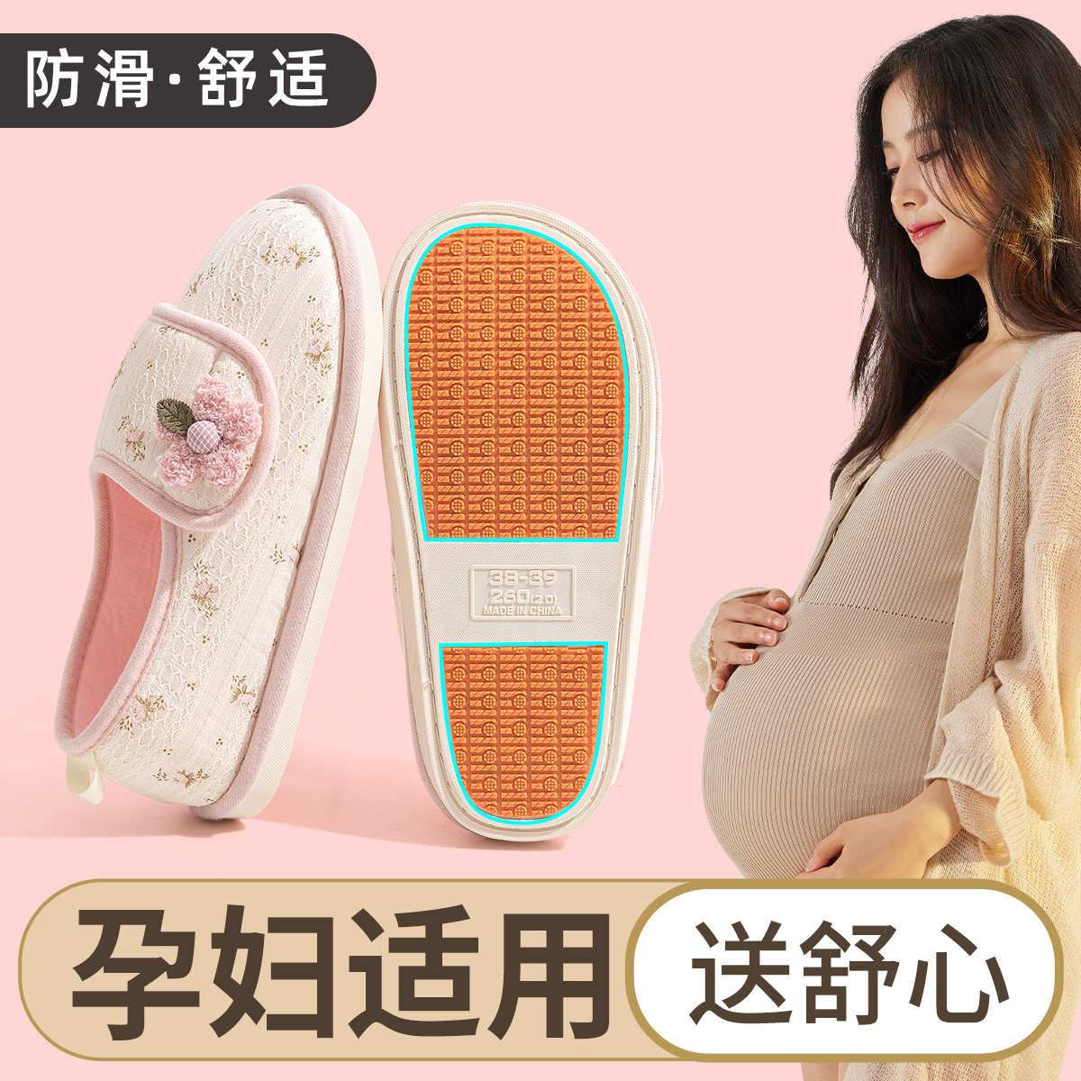 产后棉拖鞋 包跟防滑防臭外穿软底室内坐月子鞋 女 孕妇秋冬季 月子鞋