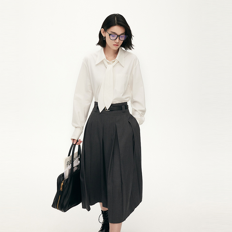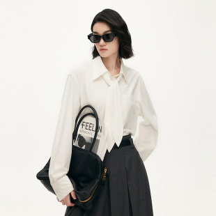 设计感复古宽松长袖 新款 衬衣上衣 女2025秋季 MAMC千鸟格纹腰带衬衫