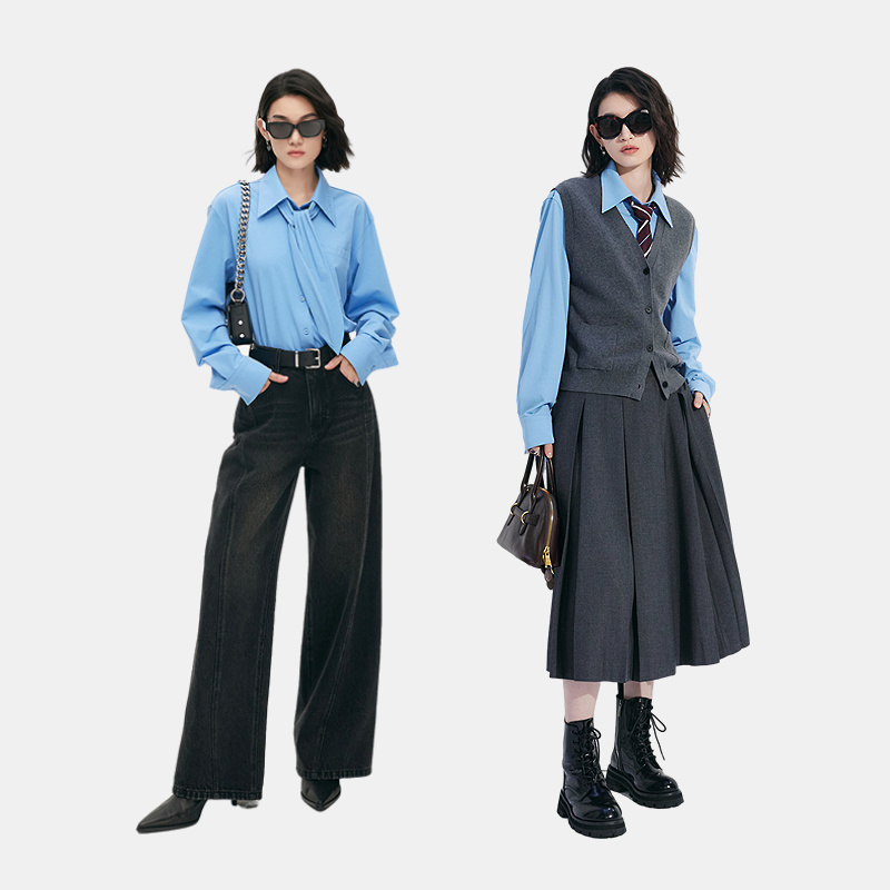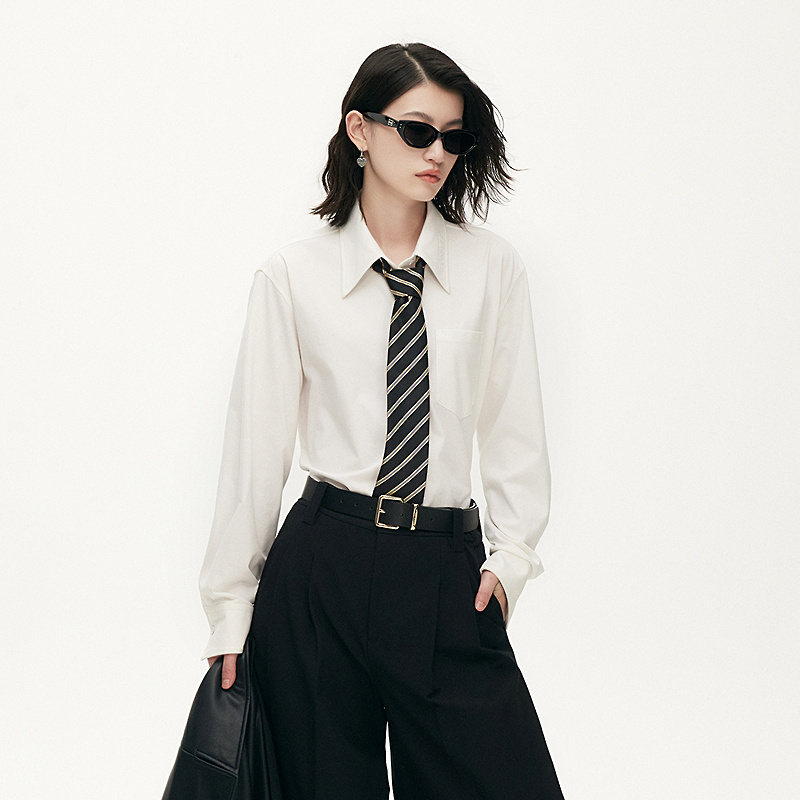 森系学院风打底宽松简约小个子上衣可单穿潮 女秋冬季 紫涵长袖 衬衫