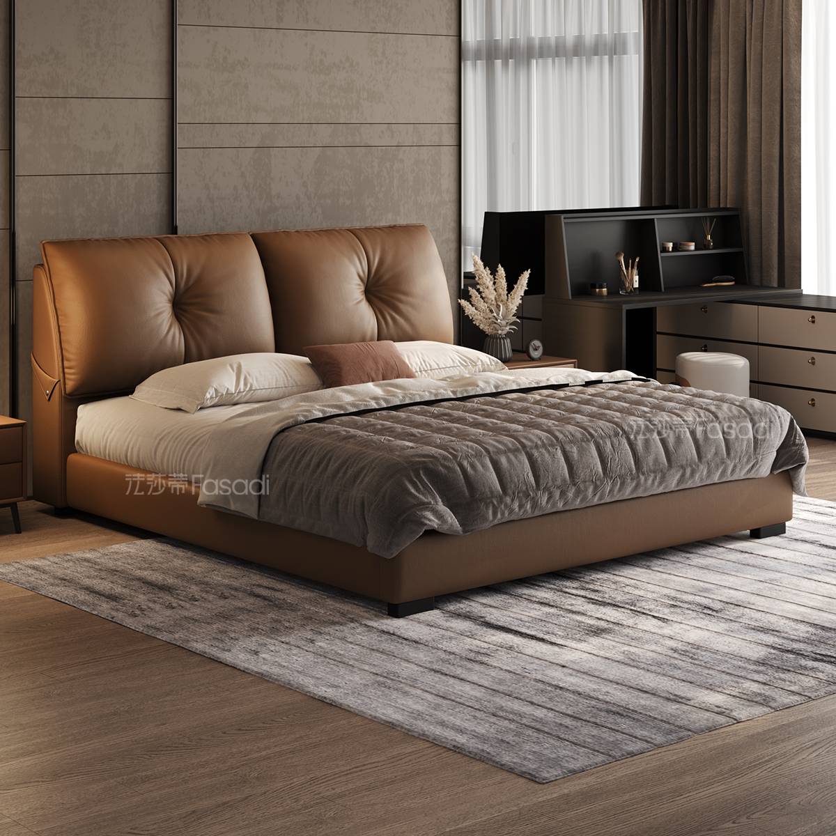法莎蒂舒阁真皮床意式 婚床 极简落地床高端主卧真皮大床2025新款